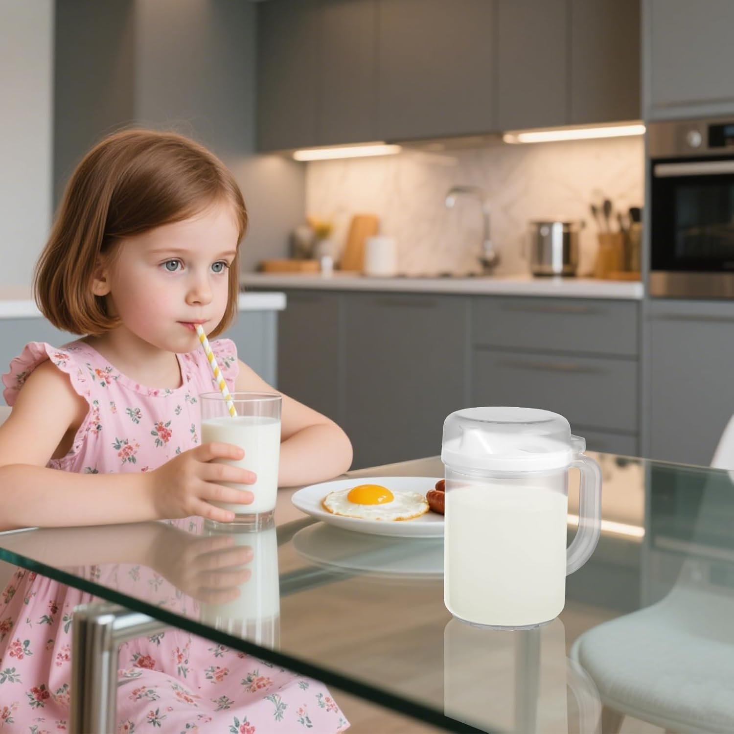 【 Size & Capacity】Perfect for meal times or play-based learning, each child mini plastic pitcher measures 5.94 inches tall and 5 inches wide, with a generous 20 oz capacity—just the right size for kids to use without spills.