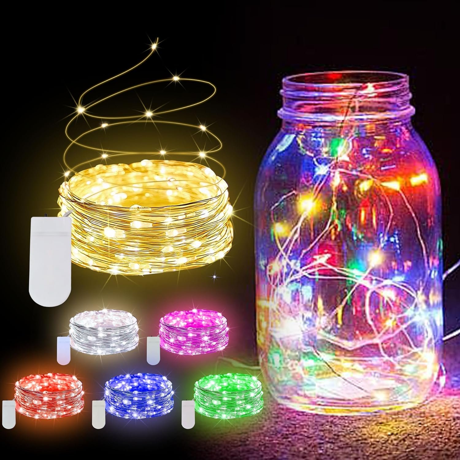 【Long-Lasting Battery Life】 : These Fairy Mason jar lights are pre-installed with long life batteries that provide 72 hours of long endurance lighting. These tiny led battery lights can be used indoors and outdoors.