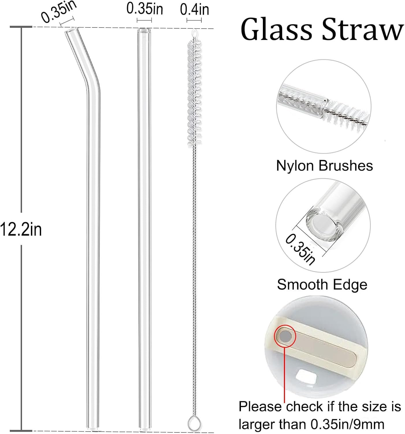 【Perfectly Compatible】: 12.2″ length x 0.35″ wide, 6 long reusable straws plus cleaning brush. Compatible with stanley straw replacement 40 oz 30 oz. Perfect for stanley cup accessories.