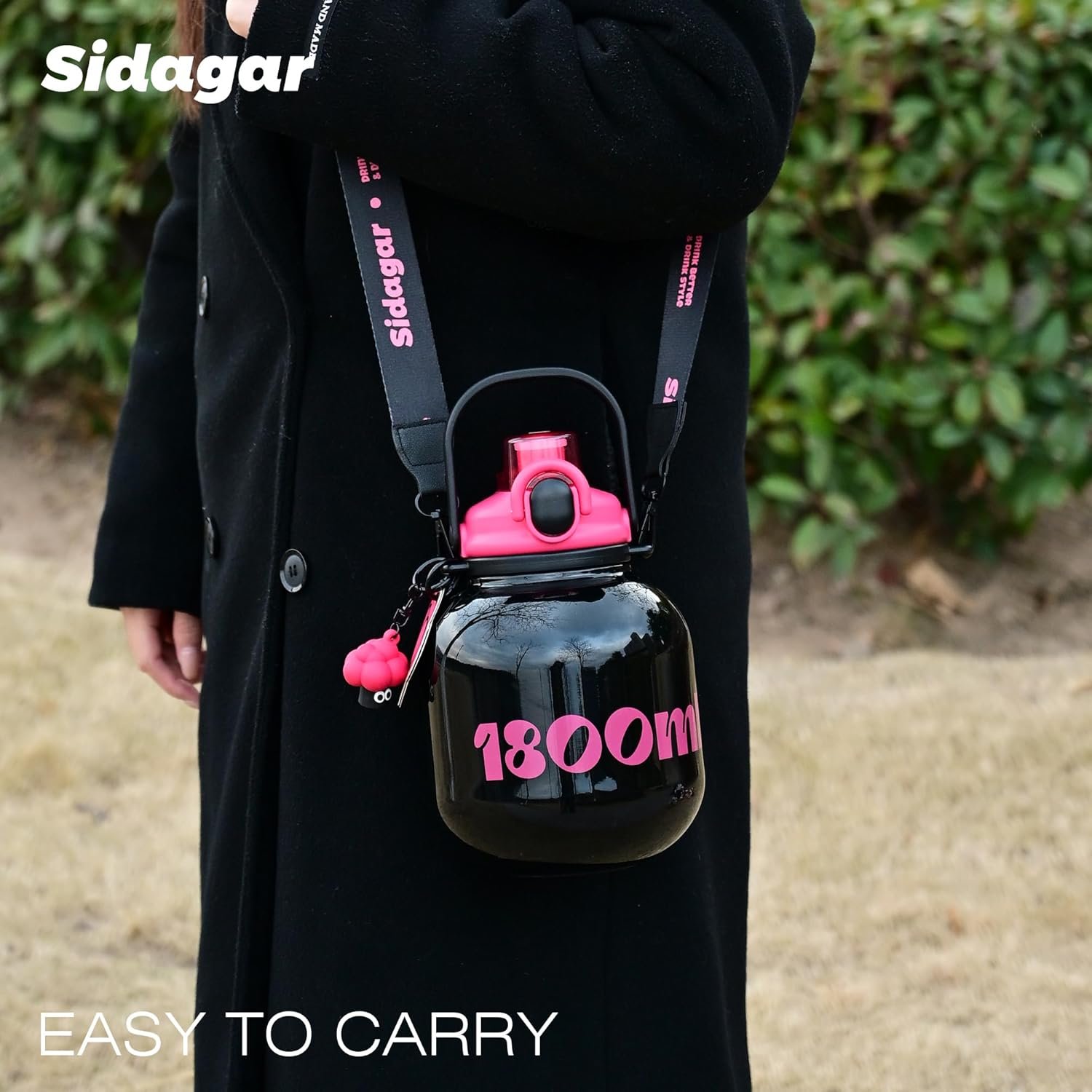 Leak-Proof Straw & Dual-Carry Mobility: Features a secure, spill-proof straw lid and a versatile carrying system with both a rugged integrated handle and an adjustable shoulder strap for hands-free travel.