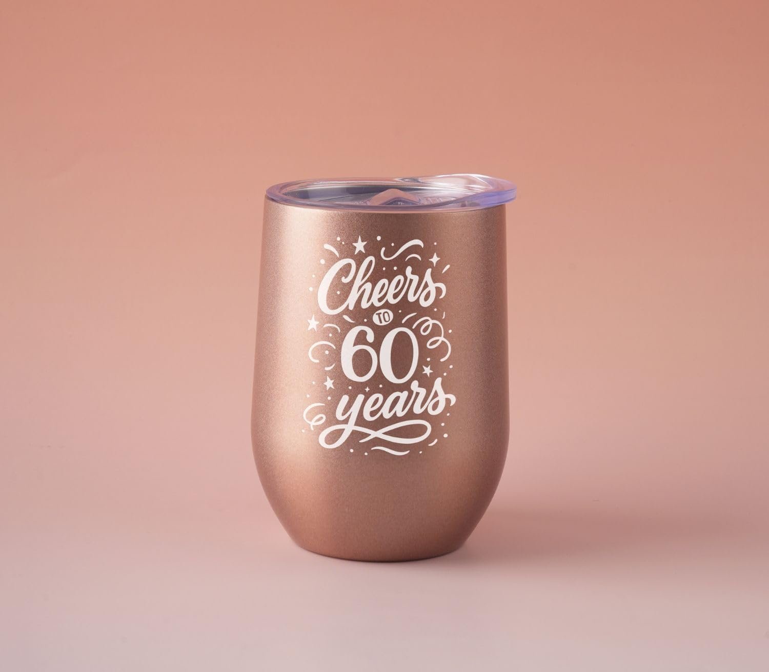 60th Birthday Gifts for Women, Her – Cheers to 60 Years – 12 oz/350 ml Stainless Steel Wine Tumbler with Straw and Lid – Women’s Happy 60th Birthday Gifts Ideas – (Rose Gold)