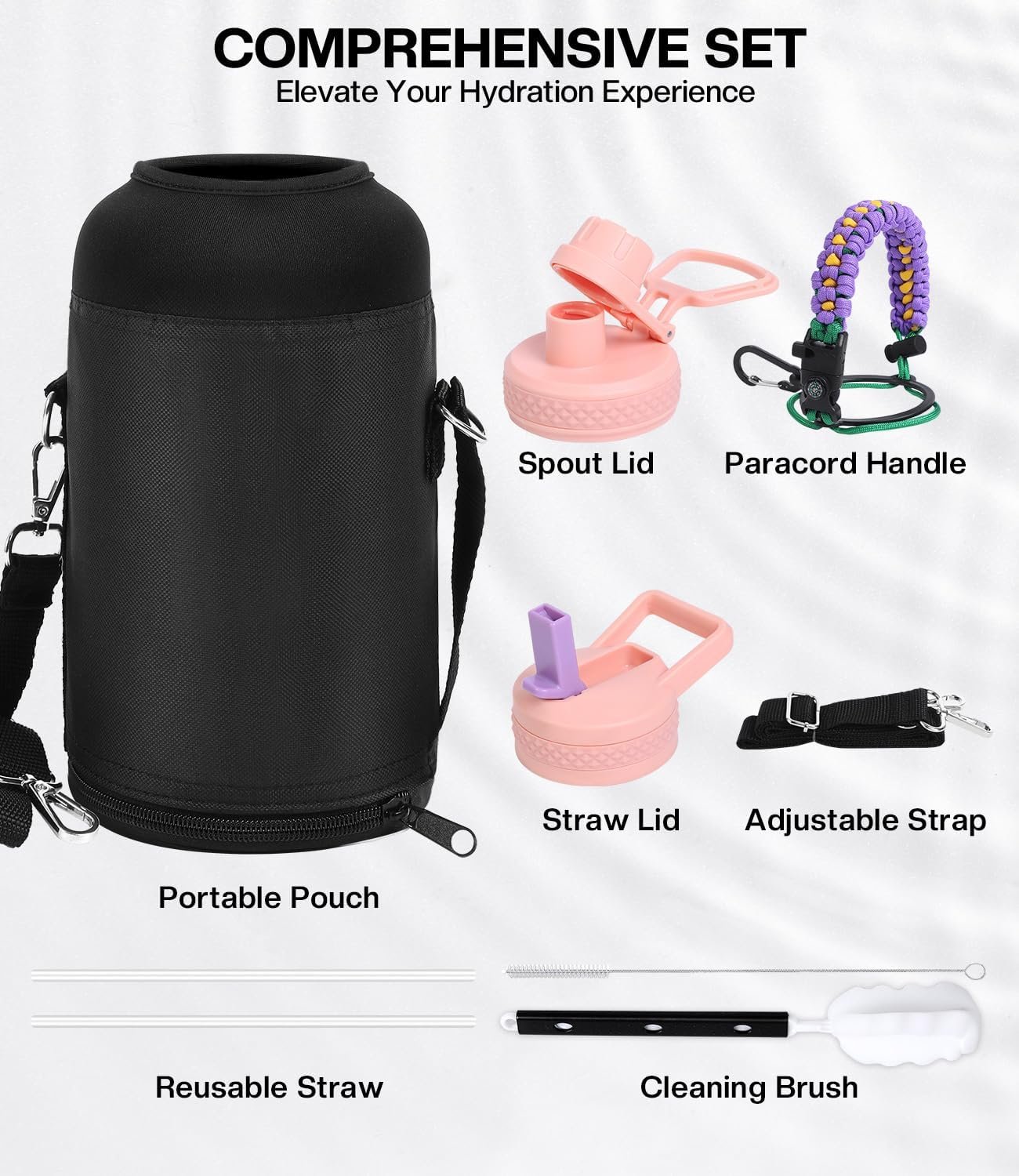 Complete Accessory Set: KOLETIKO 64oz insulated water bottle comes with a full range of accessories, including the Paracord Handle Set, Straw Lid with 2 Straws, Spout Lid, Straw Brush, Bottle Brush, and Portable Pouch. We offer a friendly customer service for any leaks or insulation issues