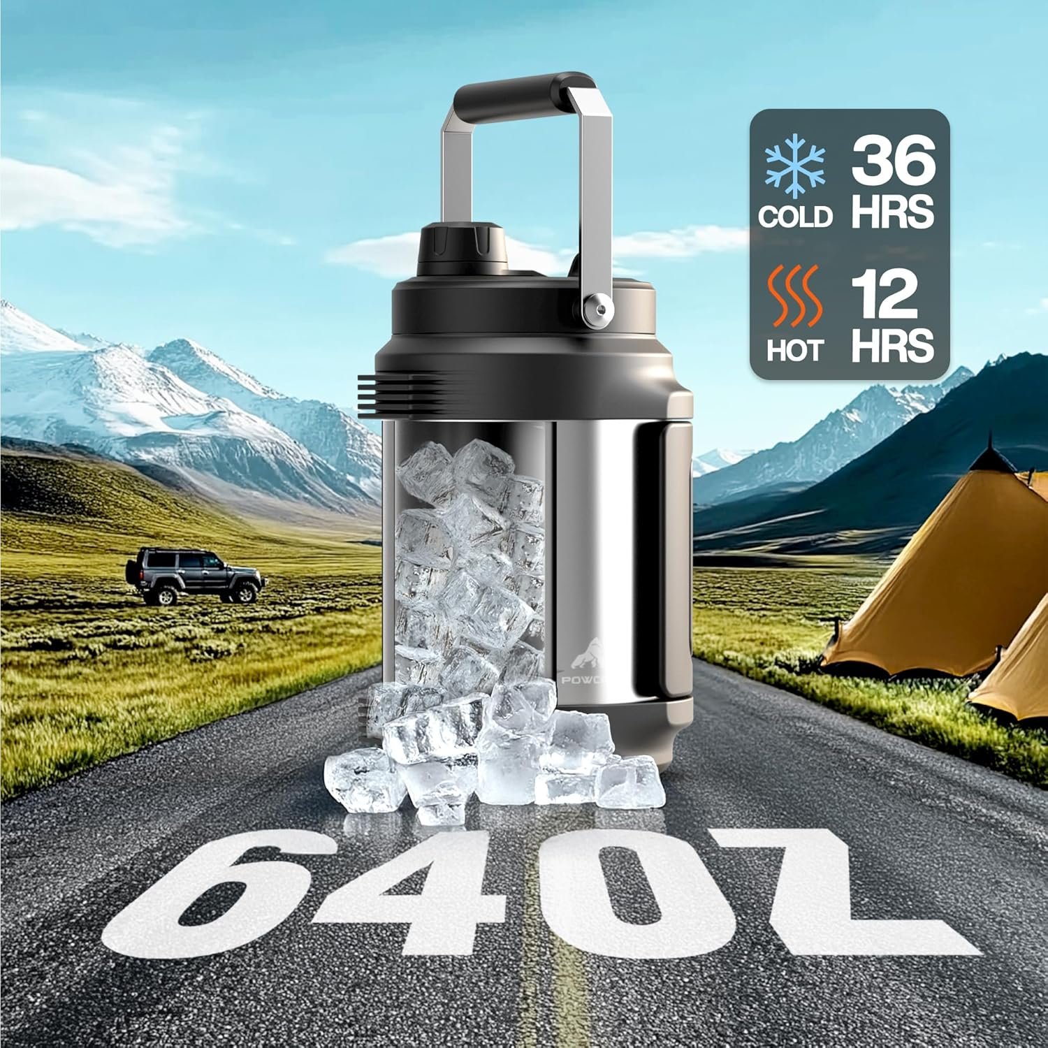 Stay Cold, Stay Cozy: POWCAN’s 64 oz stainless steel water jug keeps drinks ice-cold for 48 hrs or warm for 12, all without any sweating; Whether cycling or at the gym, it ensures hydration that lasts as long as you do