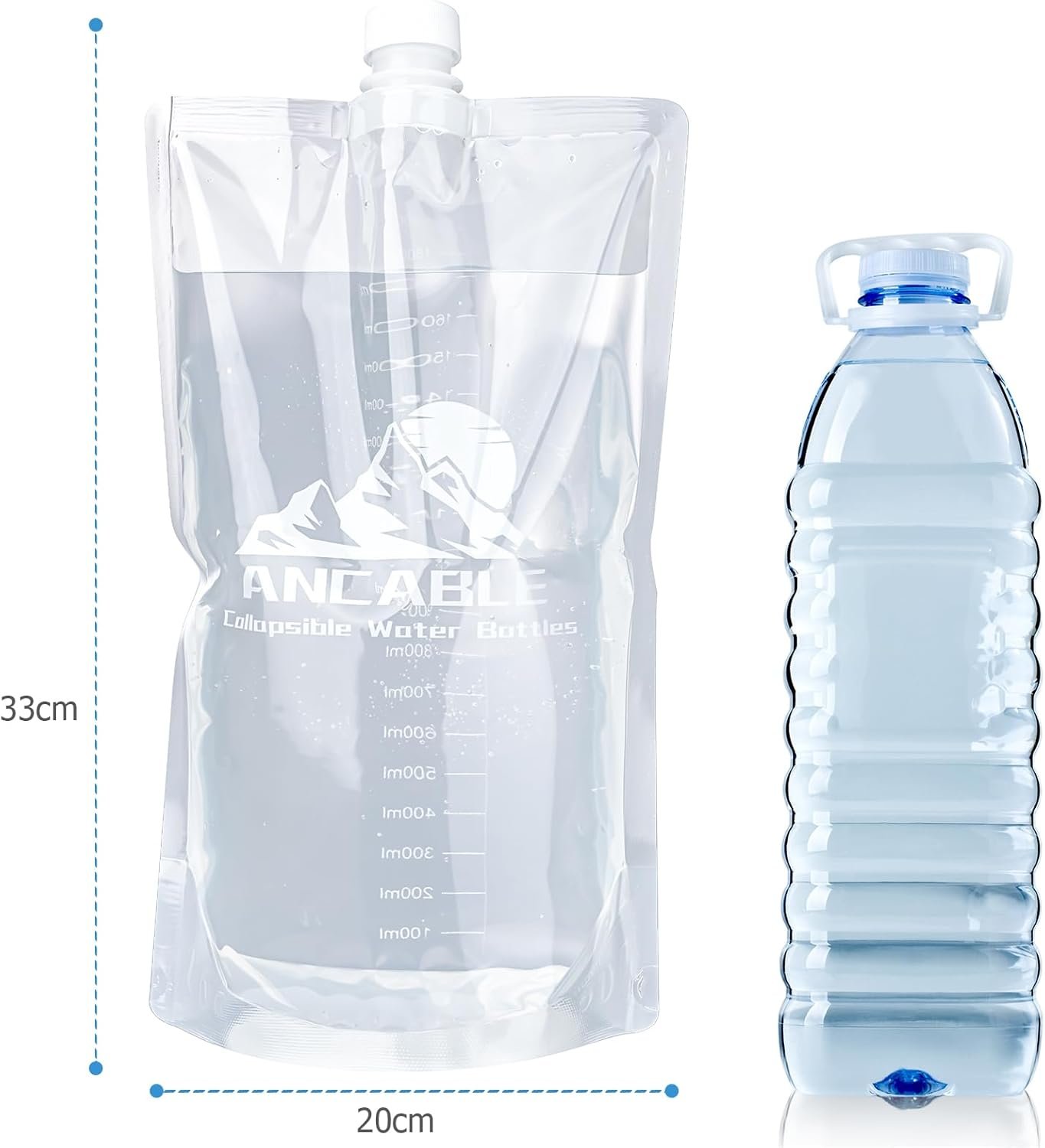 Hiking Water Bottle: 3-Pack Water Bottle, Each capacity is 2L (64OZ), and the bottle mouth is equipped with a 28mm thread that can be connected to any portable water filter. The folding water bottle can be used multiple times, and its lightweight size and volume are very suitable for various outdoor scenarios such as outdoor travel, camping, hiking, mountaineering, etc.