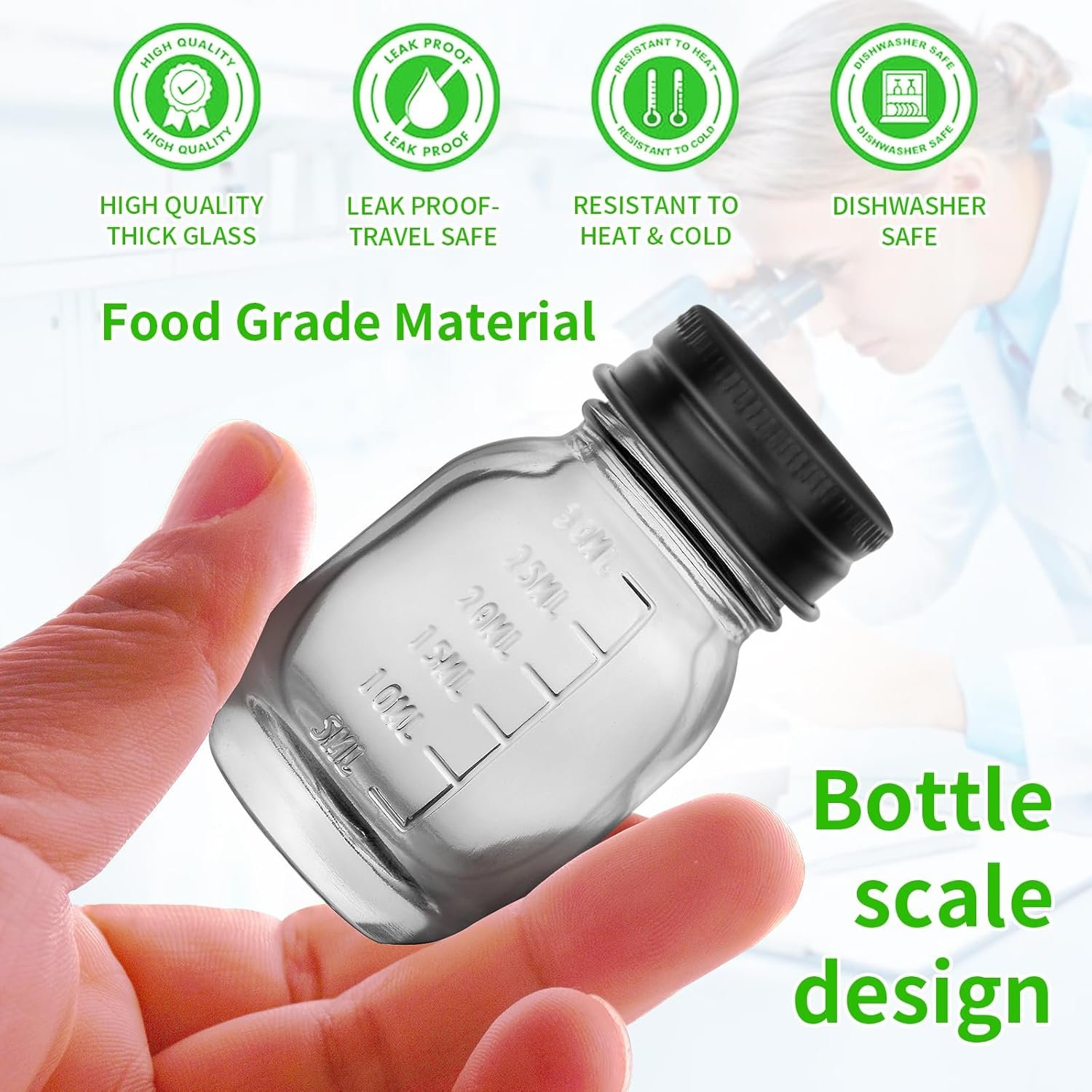 Leakproof: Each glass vial come with black screw cap andAluminum cover with built-in PE gasket to better prevent liquid leakage or evaporation.