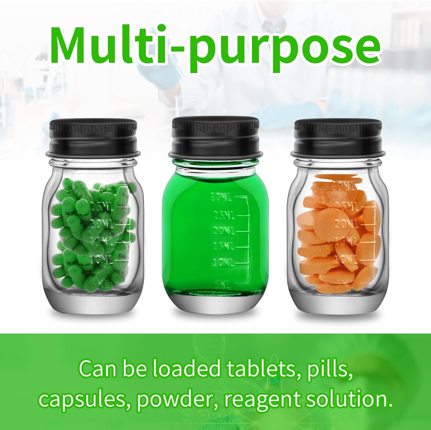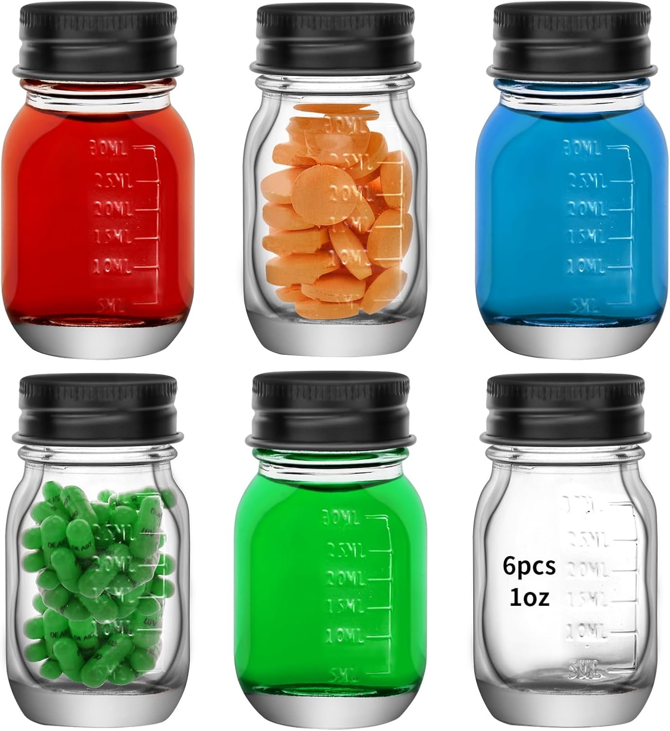 6Pcs 1oz Glass medicine bottles 30ml with Black Screw Caps, Clear Glass Vials, Leak-Proof Bottle Small Liquid Sample Vial, Leak-Proof Vial (6)