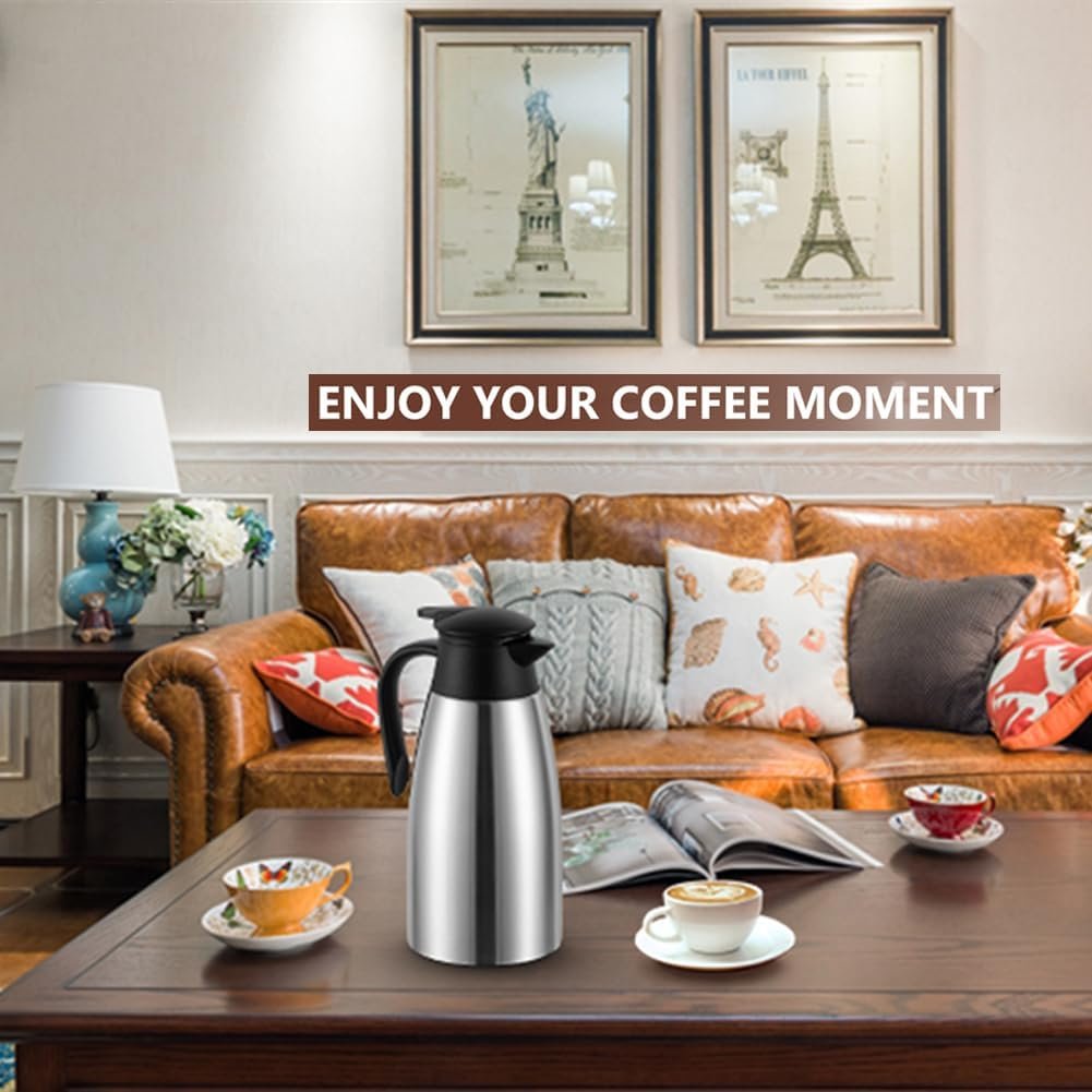 68oz Stainless Steel Thermal Coffee Carafe,Double Walled Vacuum Thermos, Flask for Coffee, Tea, Hot Water, Hot Beverage,12 Hours Hot, 24 Hours Cold!