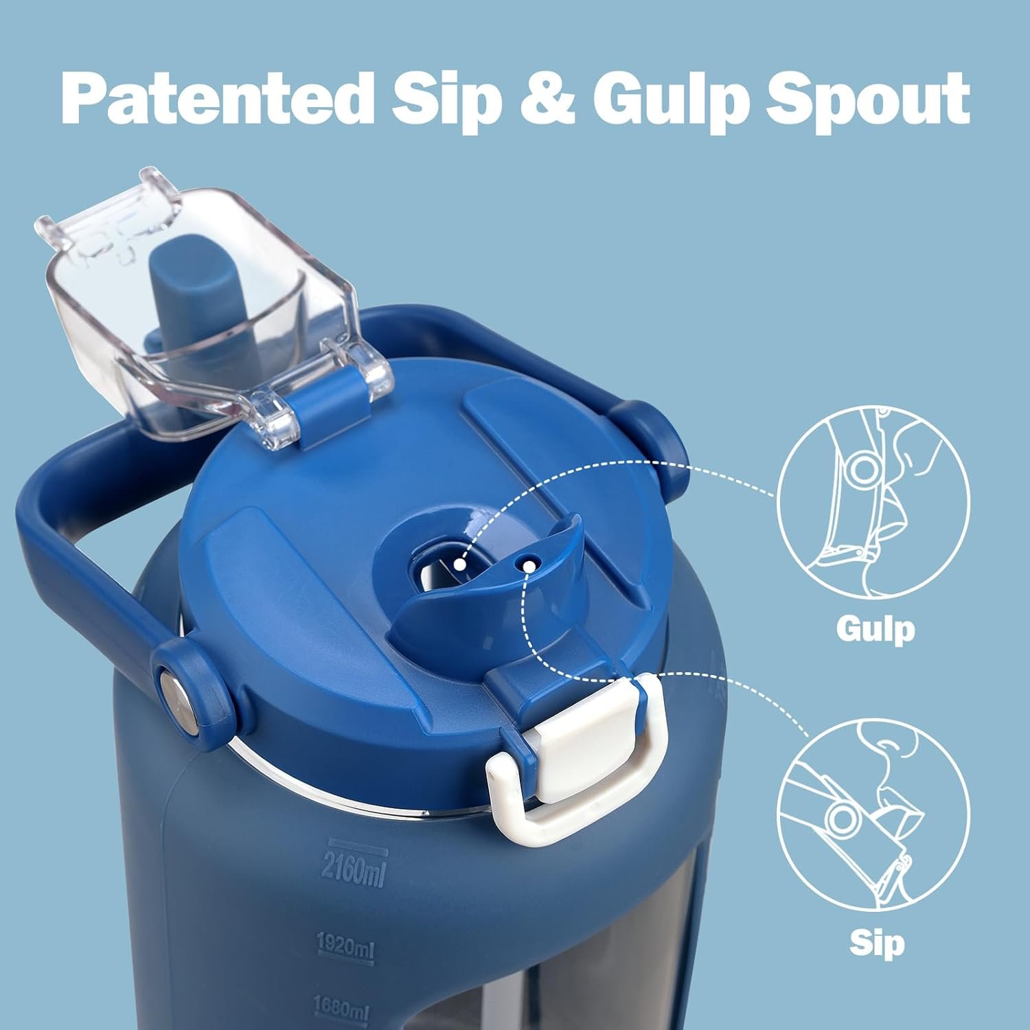 2 WAYS TO DRINK-72oz Large sports bottle features POP-UP lid with ONE-CLICK SAFETY LOCK and a covered DUSTPROOF CAP to keep hygienic and leakproof. The 2-IN-1 STRAW & CHUG LID enables two ways to drink: spillproof sip by straw or direct drink through chug mouth, both are convenient.