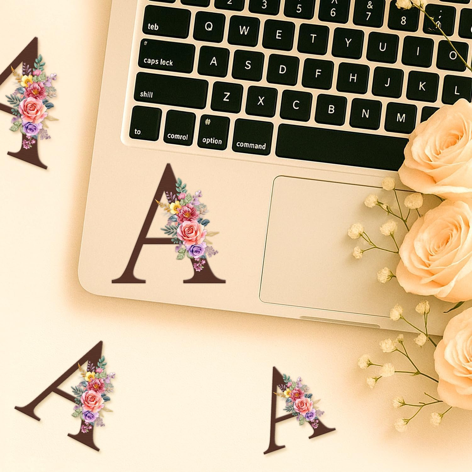 A Initial Monogram Floral Sticker – Set of 3 | Elegant Watercolor Name Letter Decals for Laptop, Tumbler, Journal | Personalized Gift for Girls, Women & Teens