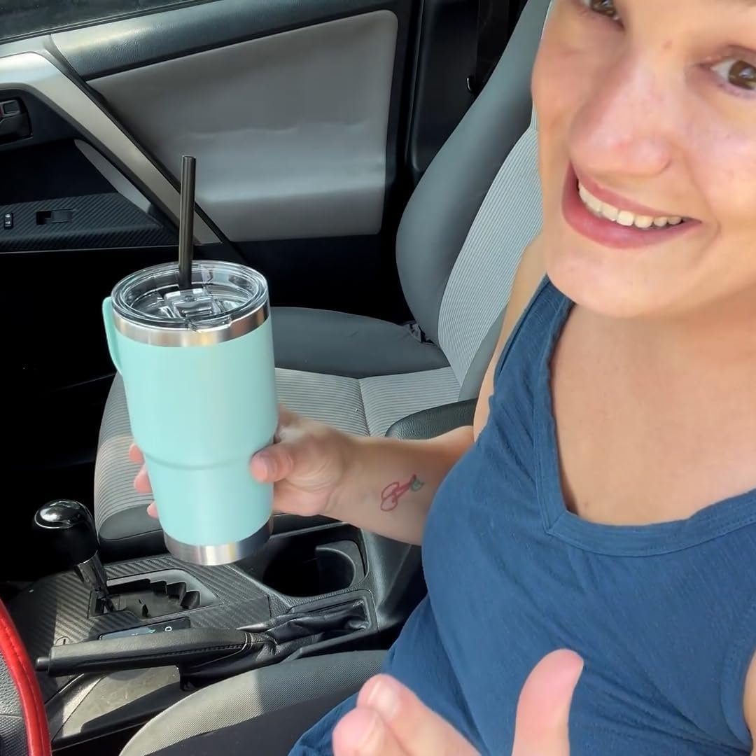 Multiple Color Options: The 20 oz tumbler with handle is crafted with stylish color powder coating, gives you multiple color options. Also make the tumbler advanced matte texture, delicate and sweat proof. Let you have a good mood when you use the water cup every time
