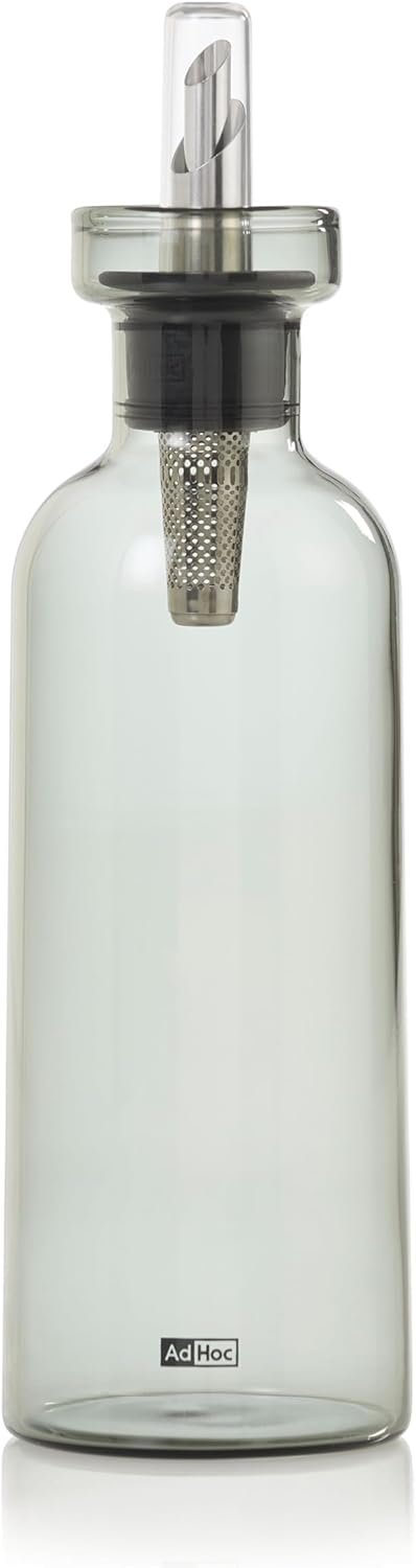 AdHoc AromaPour Oil & Vinegar Dispenser – Reusable, No-Drip Glass Container with Stainless Steel Filter – Dishwasher Safe – 16.6 oz