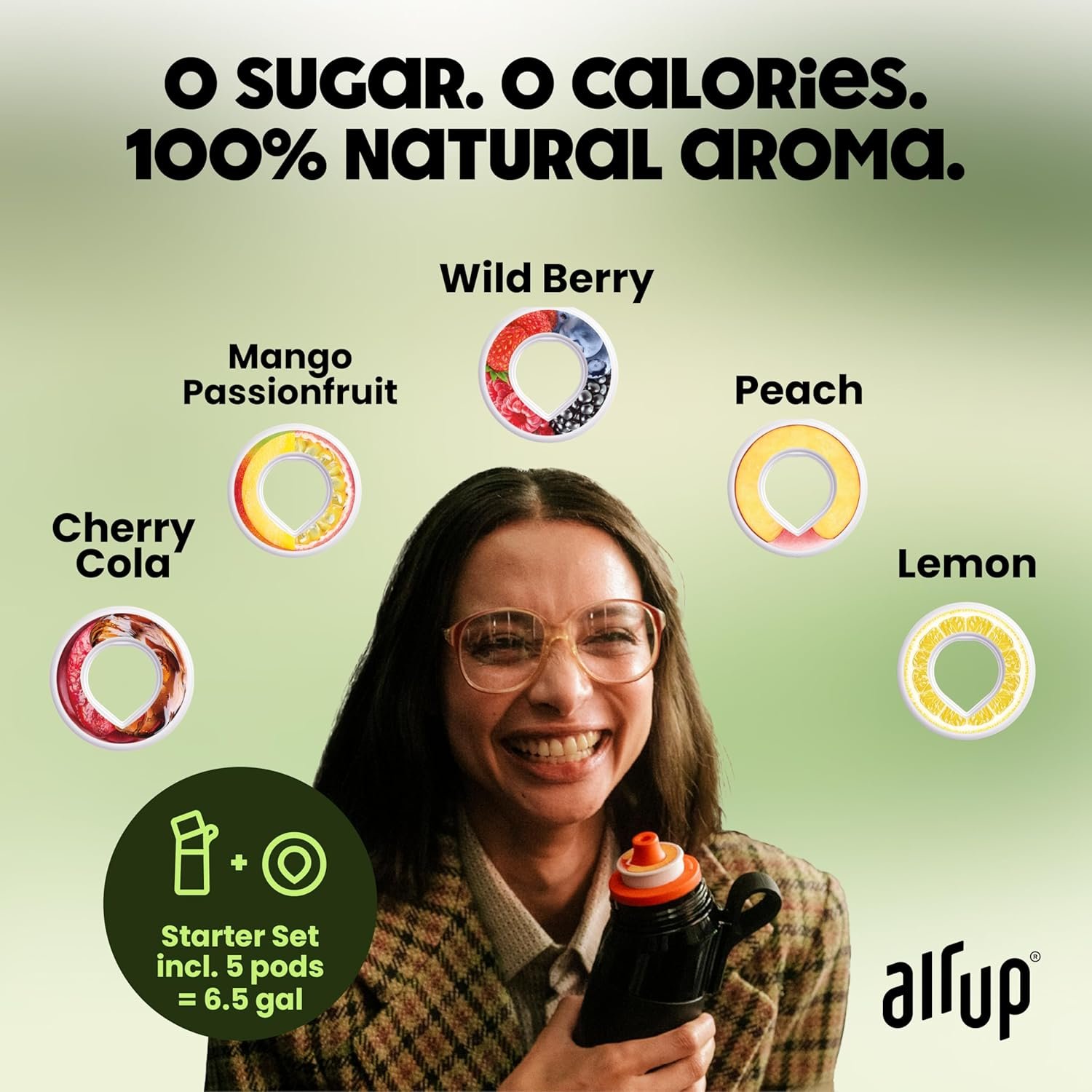 Yes, exactly. You’re drinking 100% pure water, while tasting fruity, sweet notes of peach, cherry, cola and many other flavors. And all that just by scent. Our patented Scentaste technology makes it possible.