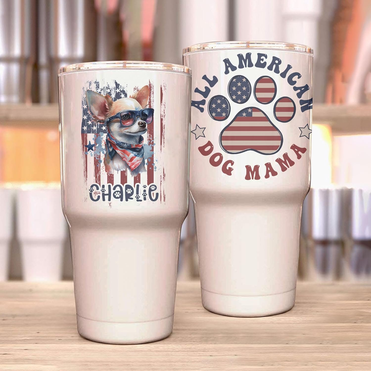 All American Chihuahua Dog Mama Mom Patriotic 4th of July US Flag Insulated Tumbler Gift Custom Personalized Name Insulated Tumbler 30oz with Lid