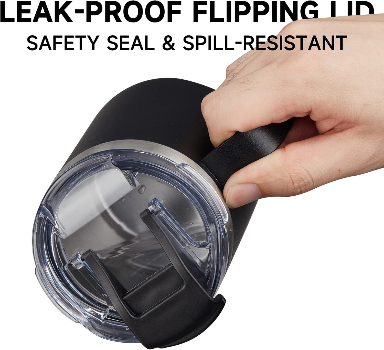 ALOUFEA 12oz Insulated Coffee Mug Cup with Handle, Stainless Steel Travel Coffee Mug with Flip Lid, Double Wall Vacuum Coffee Tumbler, Black
