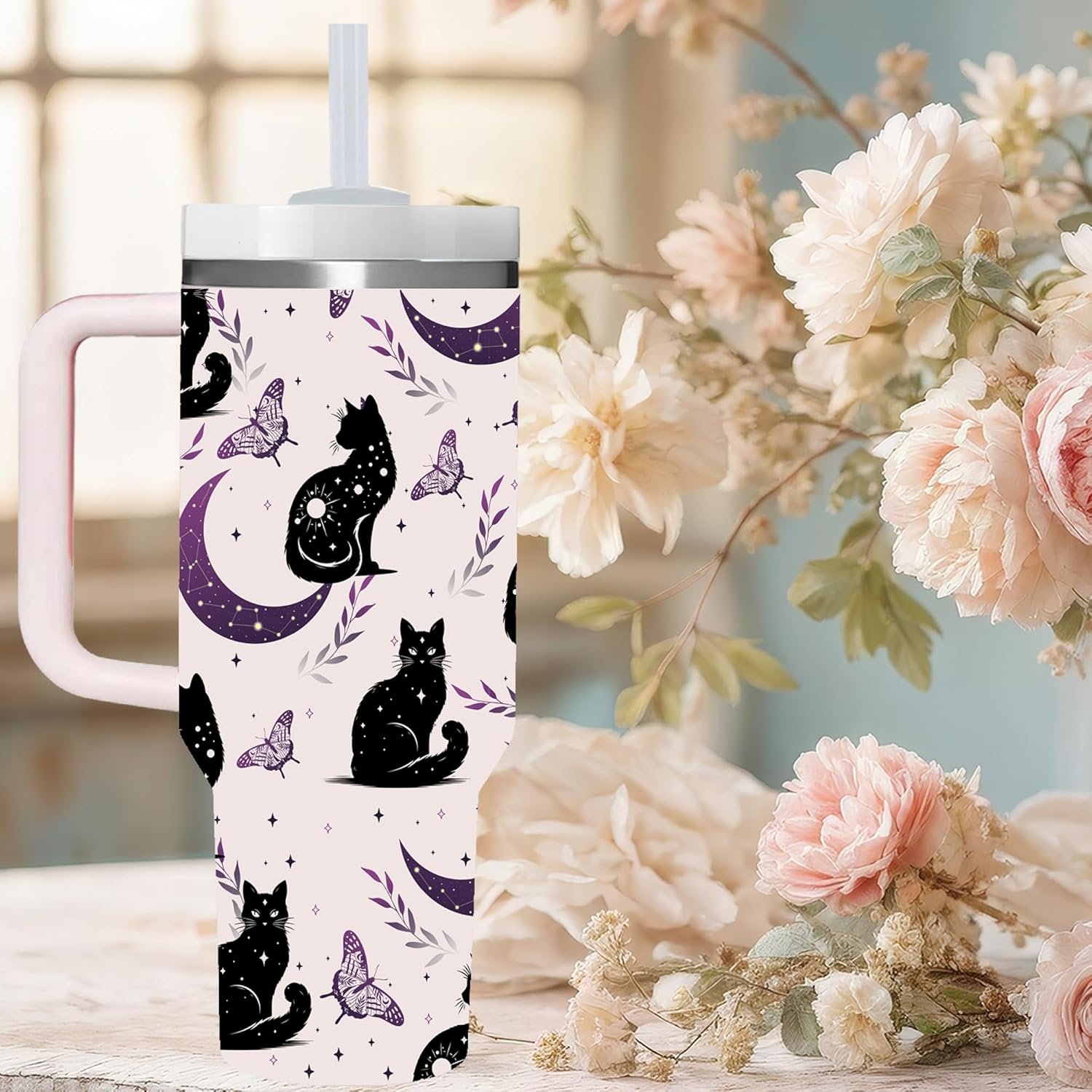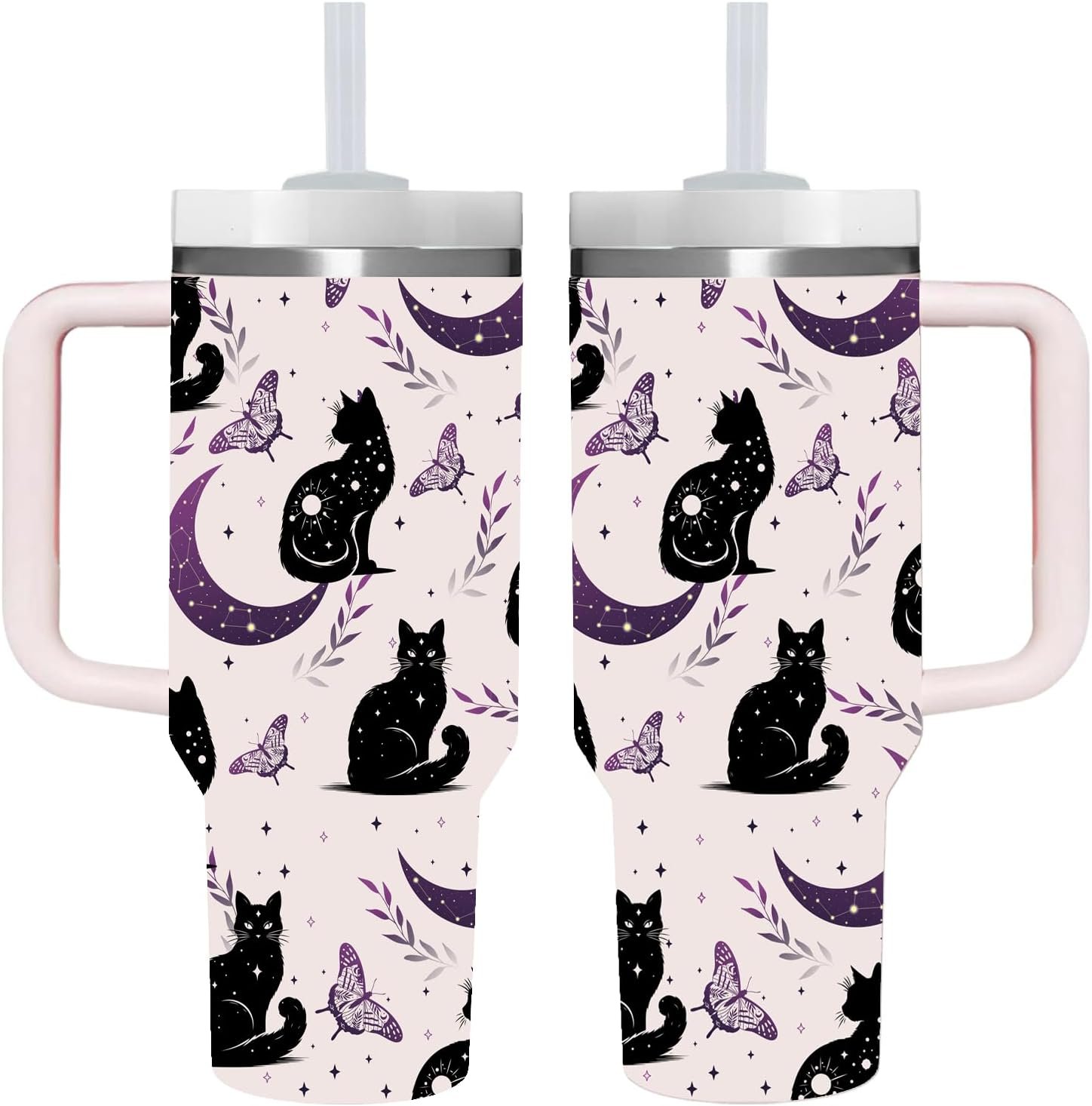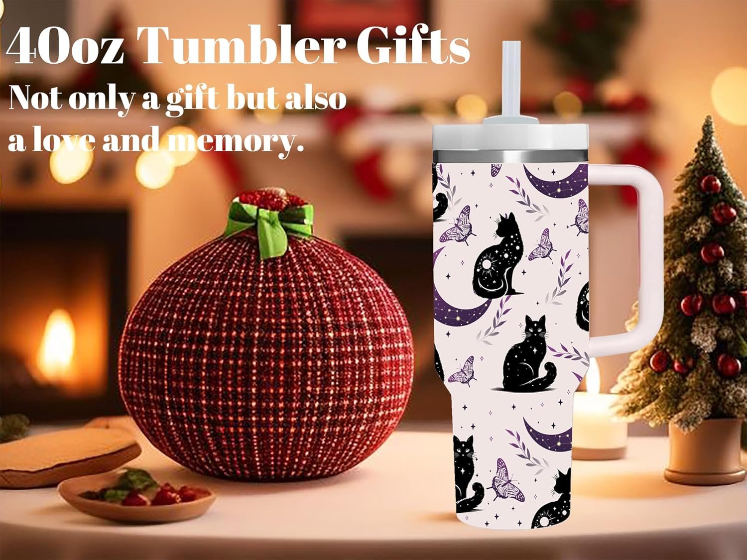 AMZUShome 40 OZ Goth Cat Tumbler with Handle.Unique Birthday Christmas Gifts for Goth Lover.Personalized 40 OZ Goth Cat Tumbler Gifts for Women Men.