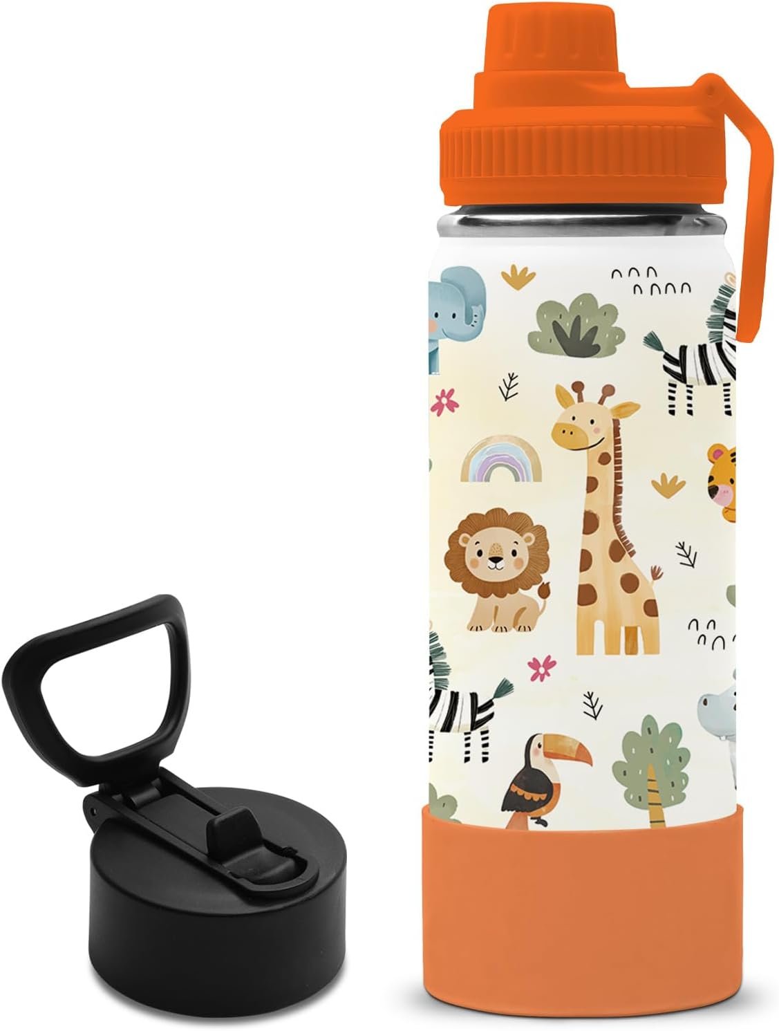 【Fun Animal & Zoo Design】Featuring vibrant lion and zoo animals patterns, this animals water bottle captures children’s imagination while encouraging hydration. The scratch-resistant artwork ensures long-lasting visual appeal, making this zoo water bottle a favorite among animal-loving kids.