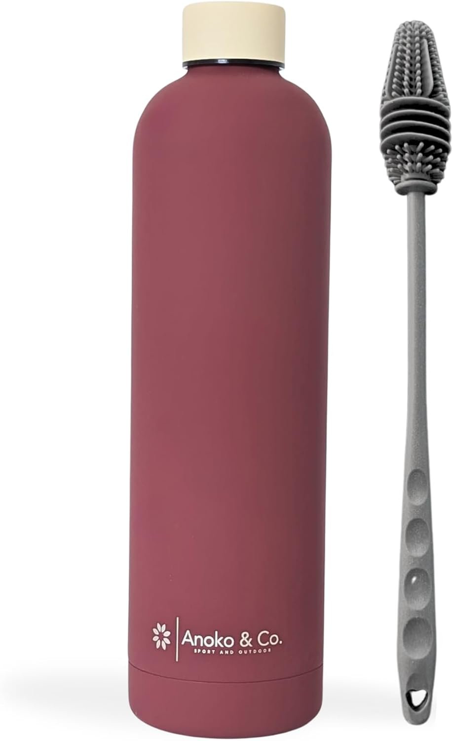 Anoko & Co. Insulated Stainless Steel Water Bottle with Cleaning Brush – 32Oz Matte finish–Leakproof, BPA-Free, Double-Wall Vacuum Flask | Keeps Drinks Hot for 12H & Cold for 24H | for the go