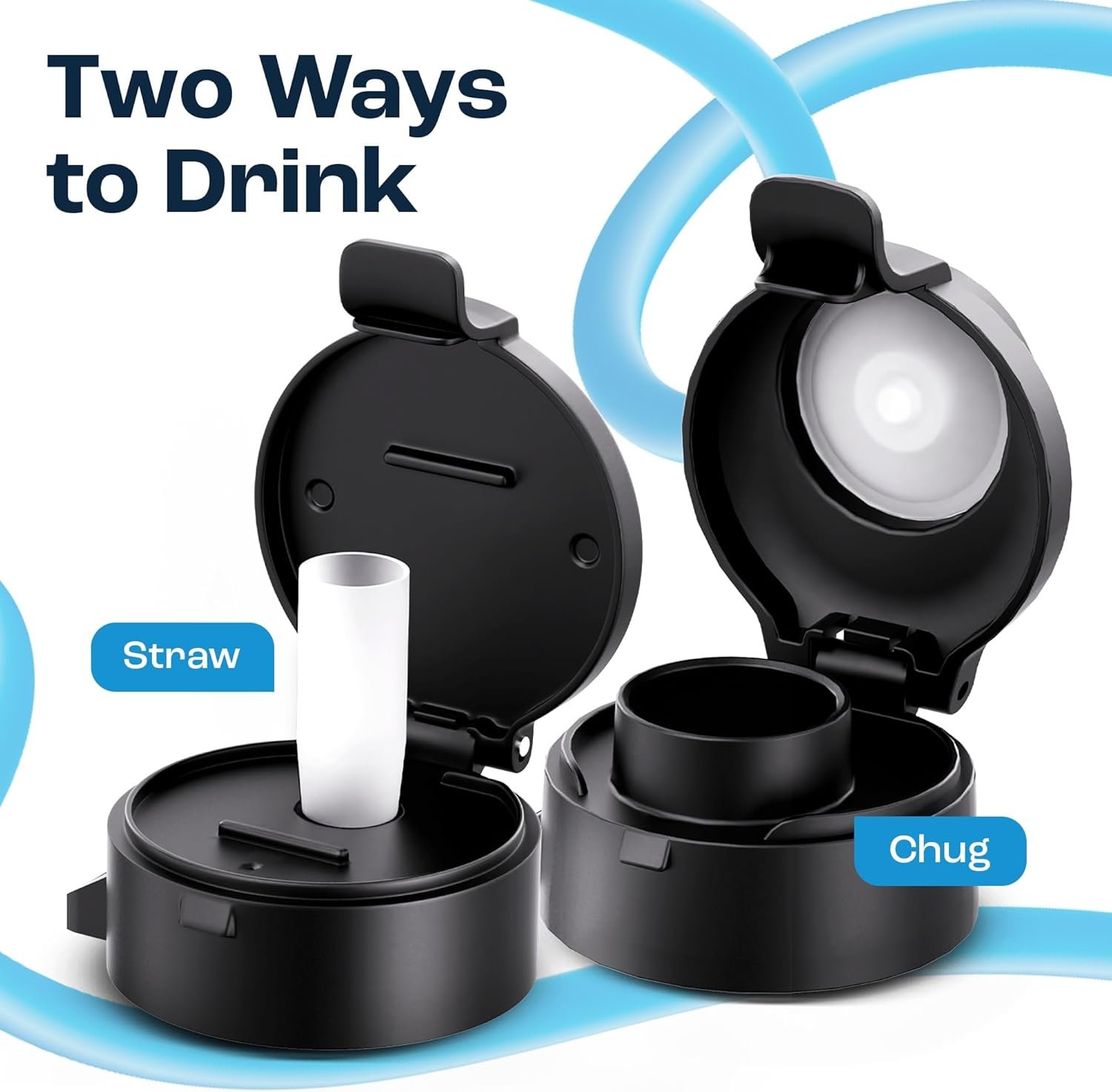 2 different lids included – This large water bottle includes 2 interchangeable 100% leak-proof lids, one with a silicone straw and one without. Switch style on your water jug according to your drinking preference, activity and more!