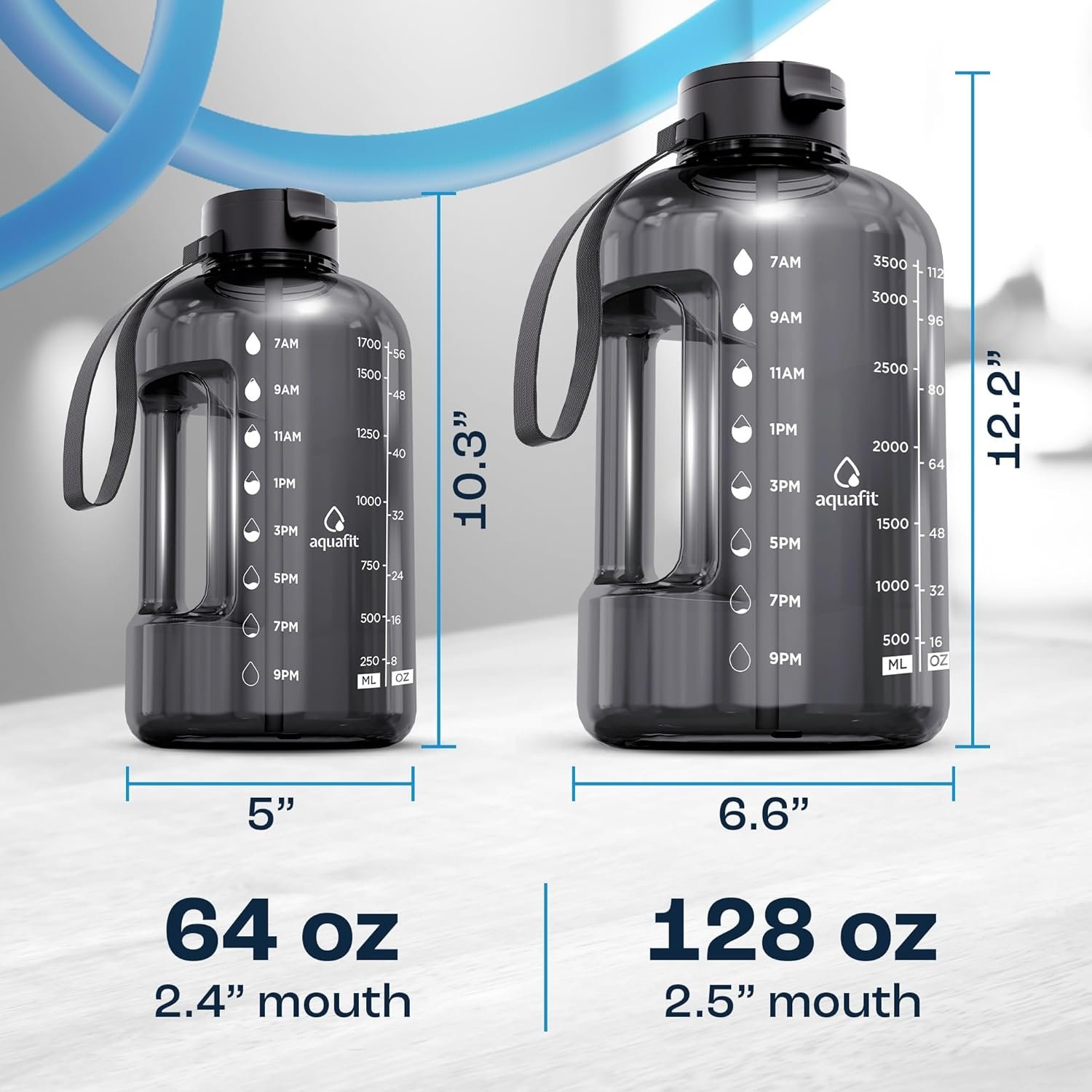 Track how much you drink – Our half gallon water bottles come with clear time markers on the side so you can see your daily water intake and stay on track to meet your health and fitness goals.