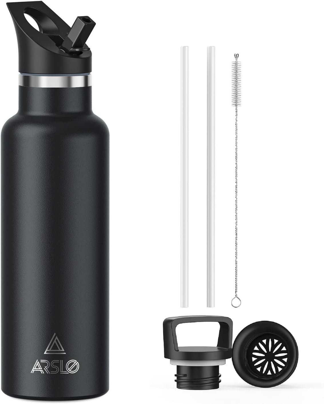 INSULATED WATER BOTTLE: Arslo 12 17 20 25 32 oz water bottle features advanced vacuum double-wall insulation technology that keeps your beverages hot for 12 hours and cold for up to 24 hours, even the last sip of a cold drink or hot coffee