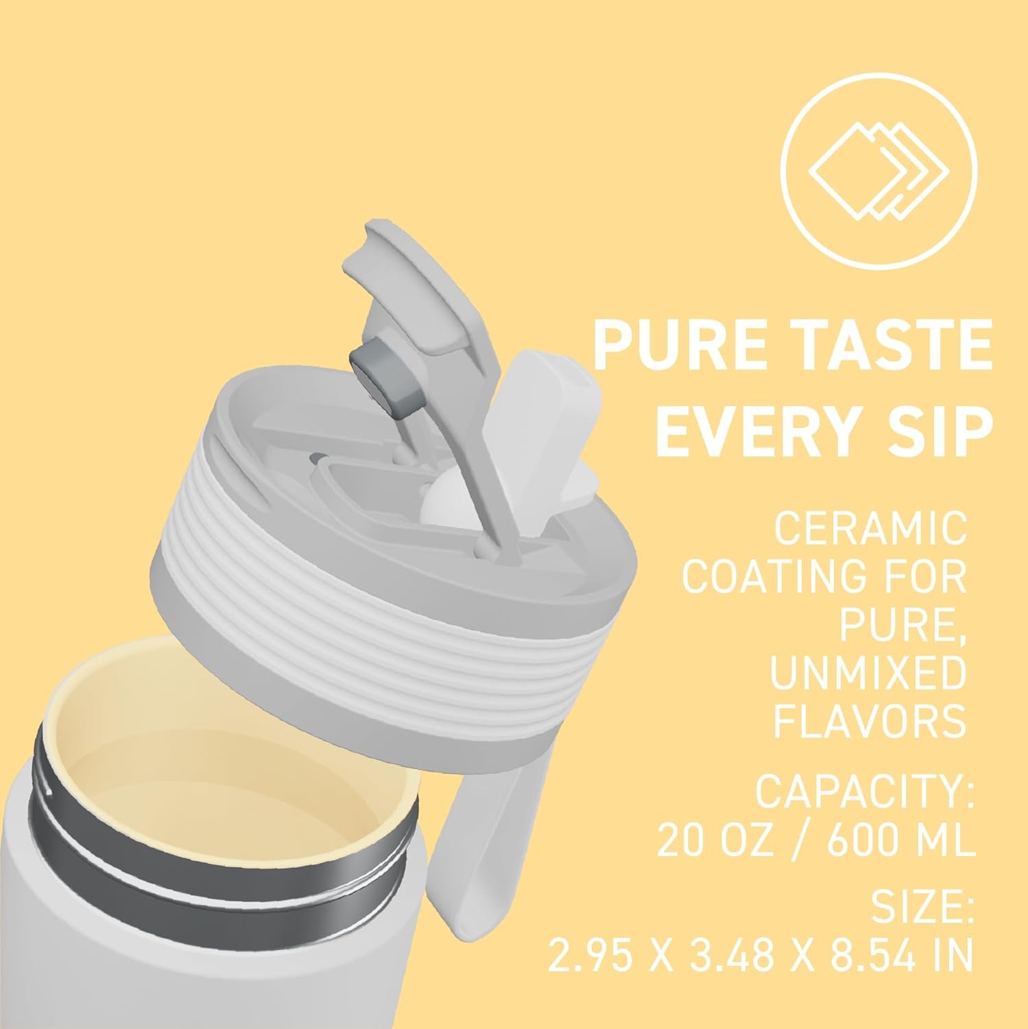 Perfect Temperature Control, Anytime, Anywhere: Enjoy every sip just how you like it with our ceramic water bottle, designed to keep hot drinks piping and cold drinks icy. Featuring a 2-in-1 lid with a flip-up straw for cold drinks and a sip lid for hot drinks. Whether you’re a coffee enthusiast or a fan of icy lemon water, this insulated water bottle maintains the ideal temperature for hours, so you’re ready for whatever the day brings!