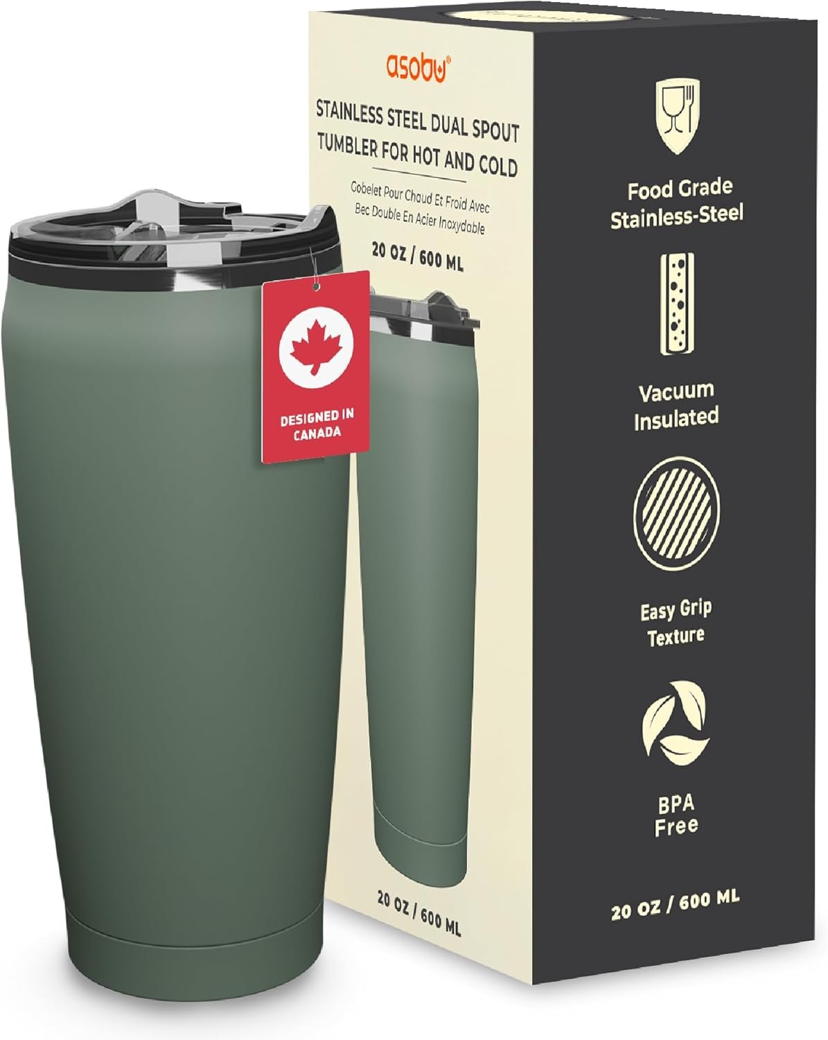 asobu 20oz Coffee Mug, XL Spill-Proof Coffee Mug, Double-wall vacuum-insulated Stainless Steel, Keeps Flavors True, Stainless Steel Tumbler with Coffee Sip Lid for Hot + Cold Drinks