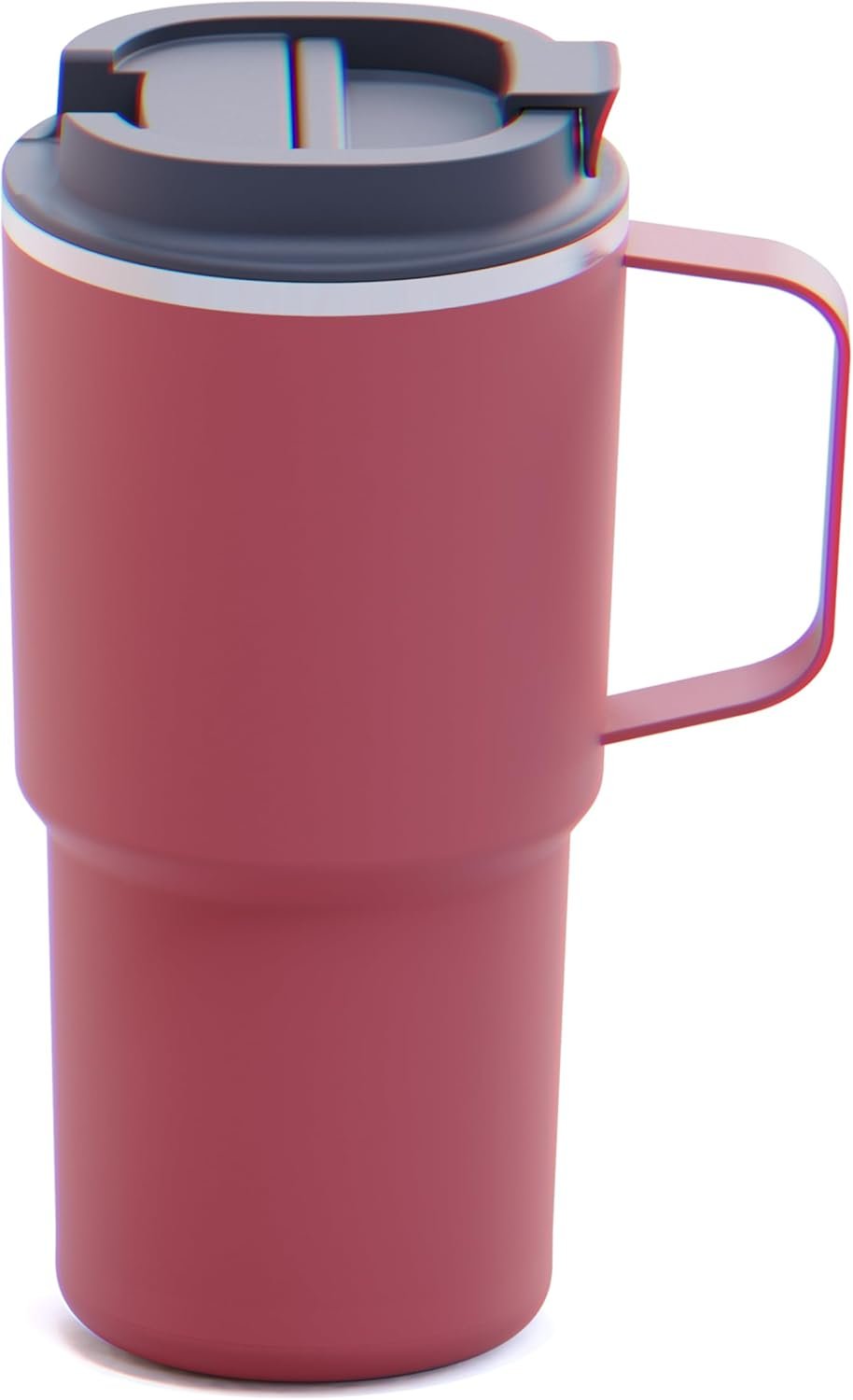 asobu Red 22oz Nitro Tumbler, Ceramic-Lined Insulated Travel Mug with Puramic™ Finish – Easy-carry handle, Durable, Spill-Proof Design, Double-Wall Stainless Steel for Pure Flavor