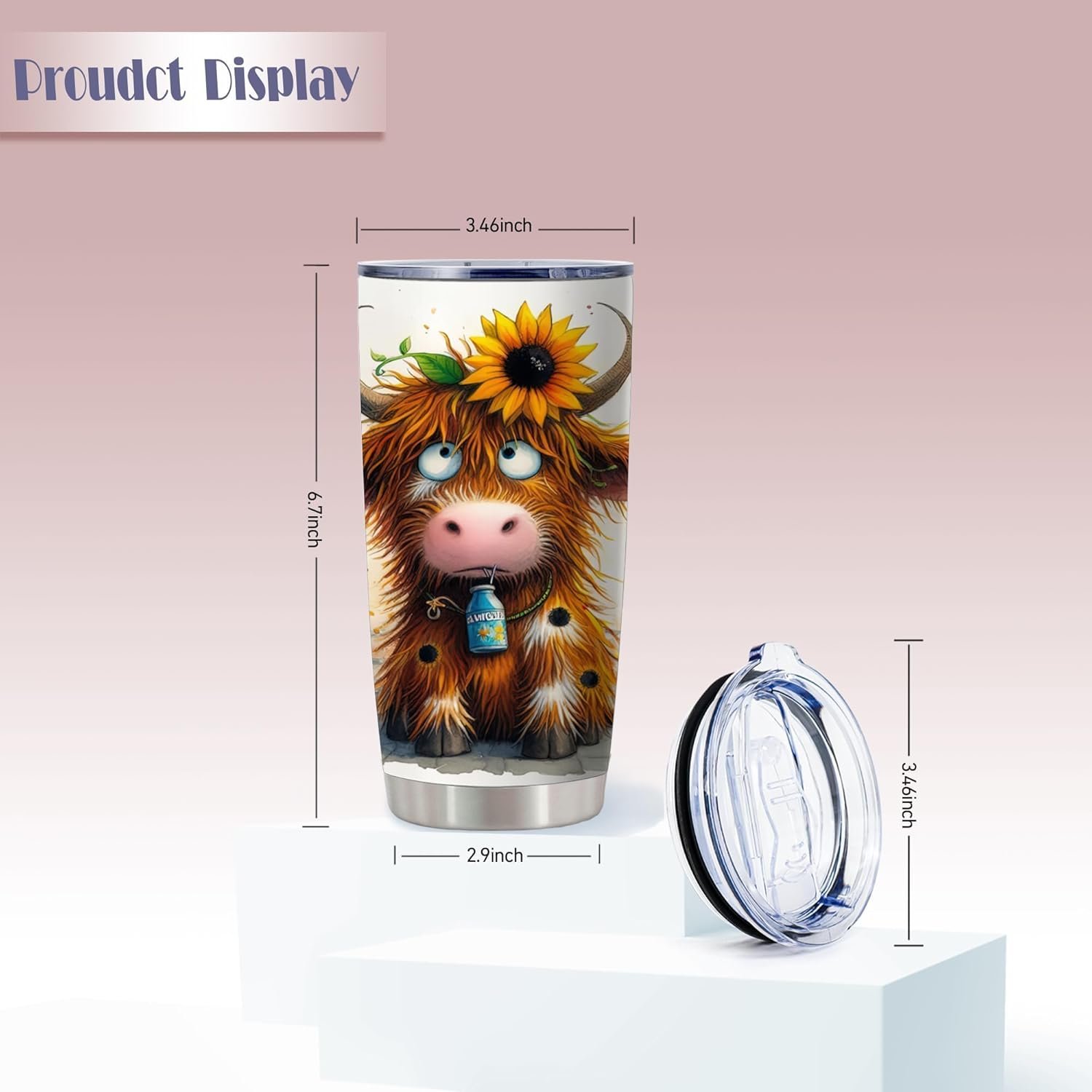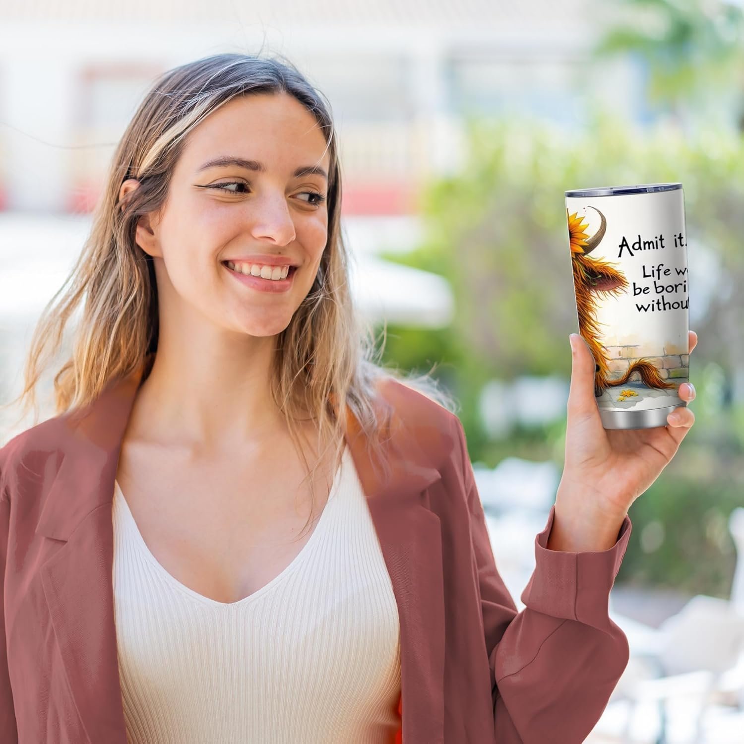 ATHAND Highland Cow and Sunflowers Tumblers,Admit It,Life Would Be Borimg without Me 20 Oz Insulated Stainless Steel Vacuum Tumbler,Travel Coffee Mugs,Birthday Gift for Women,Men,Boy,Girls,1 Pcs