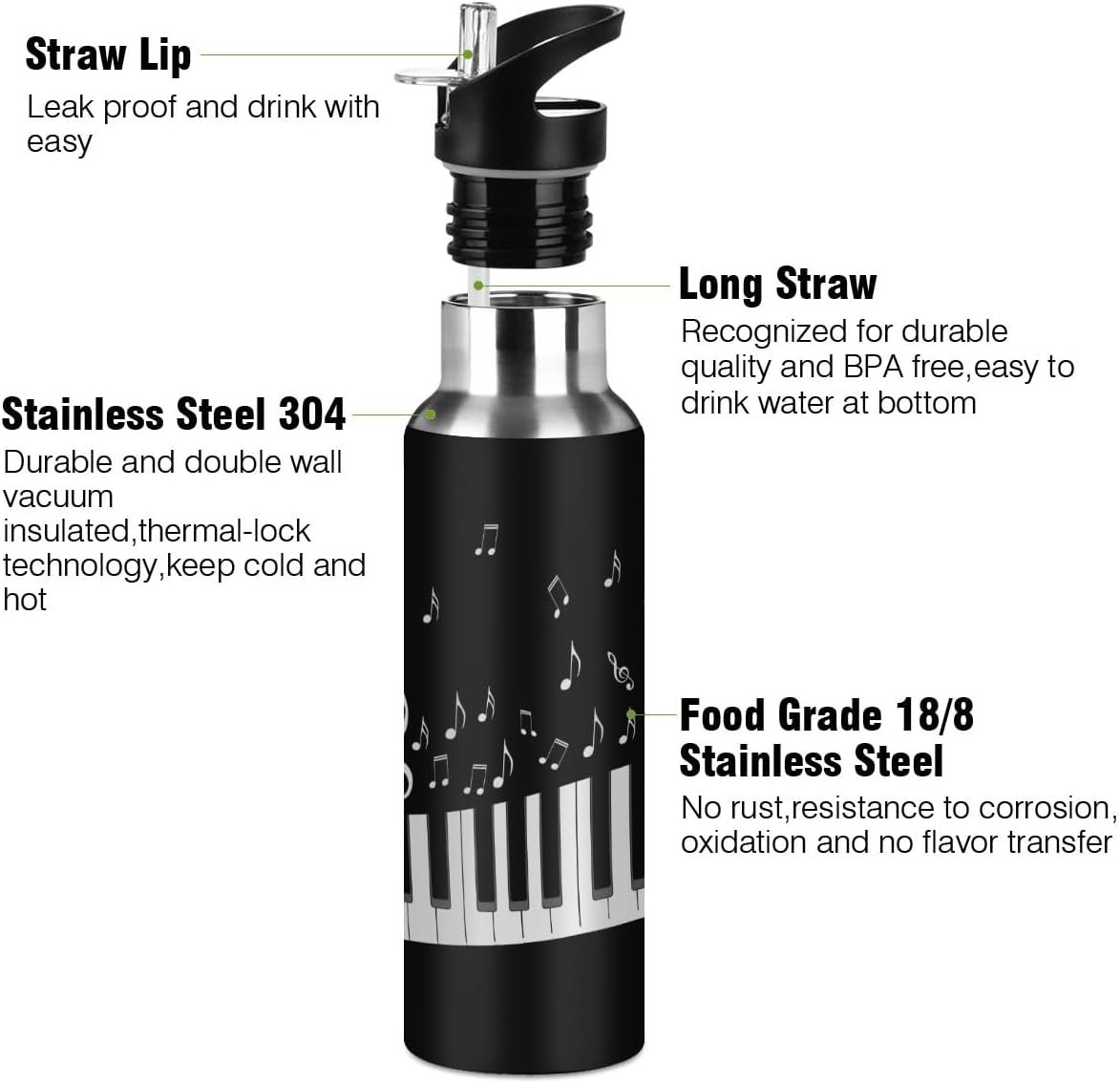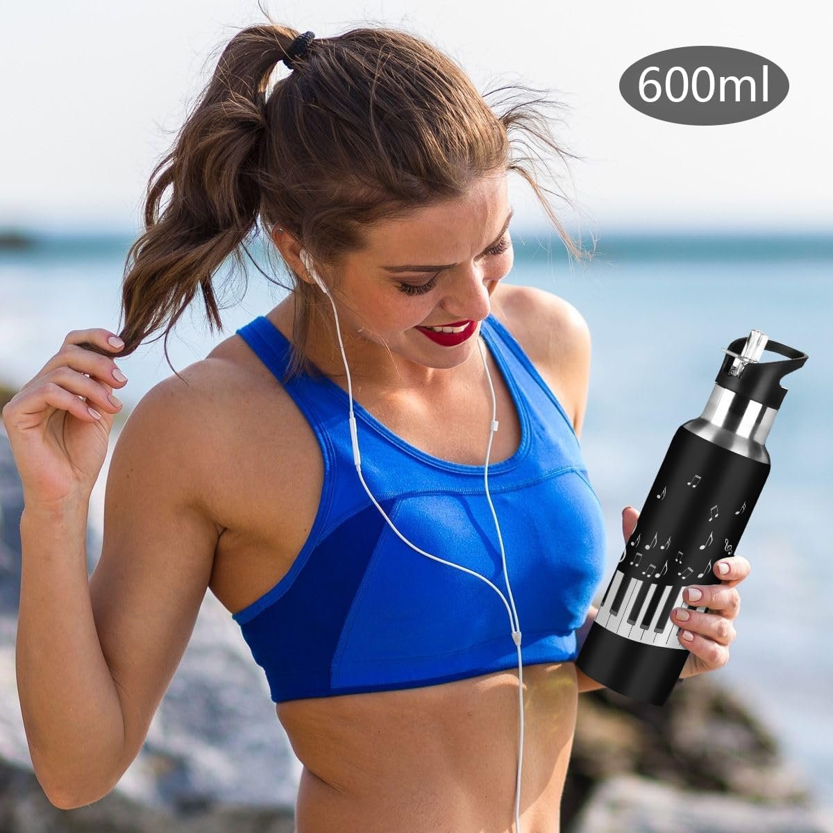 AUUXVA Music Note Black 20oz BPA Free Sports Bottle for Gym Hiking