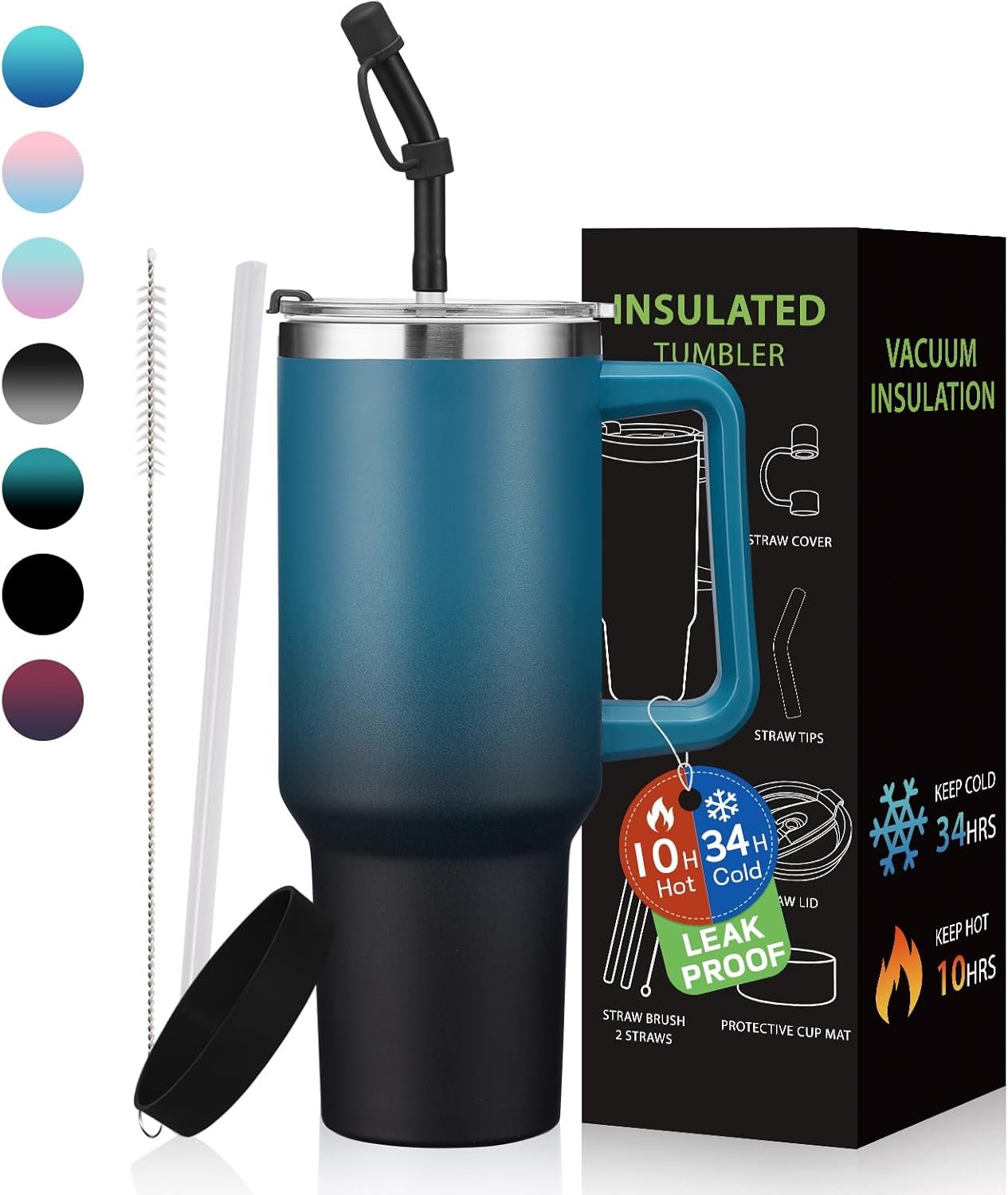 【Cup Holder Friendly】Large 40 oz tumbler capacity with tapered base fits most car cup holders for daily commutes or road trips. Perfect for home, office, gym, camping, beach, and more.