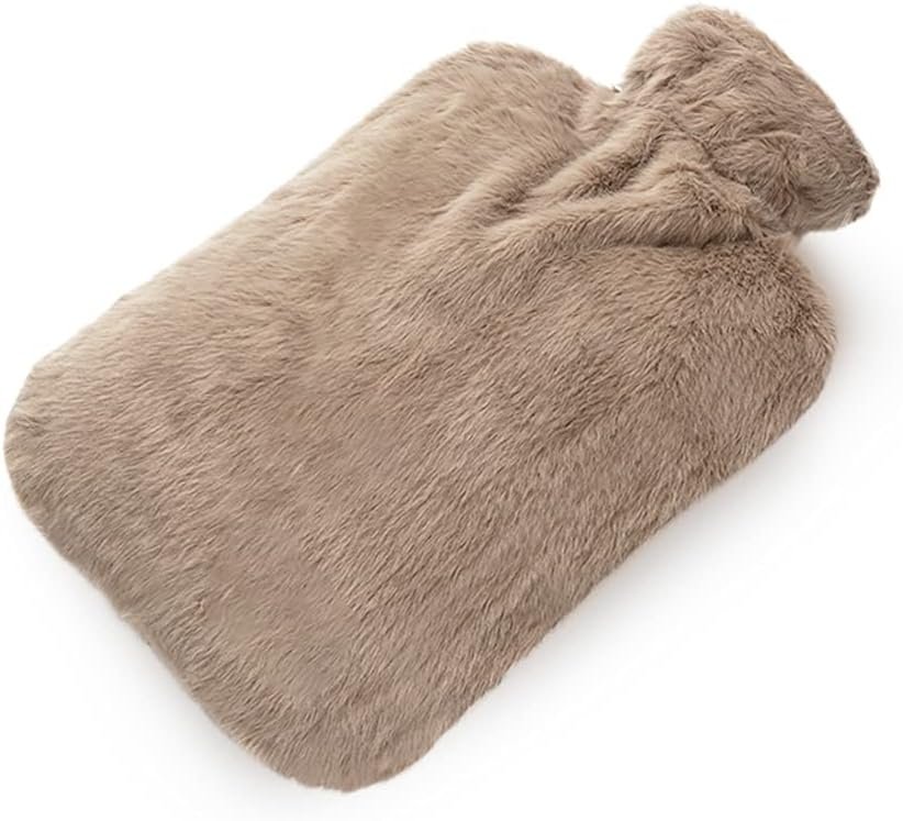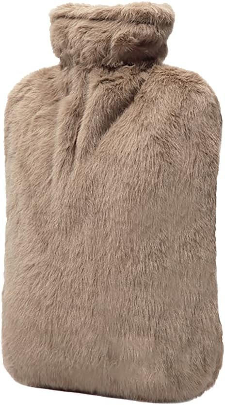 BICAREE Hot Water Bottle with Cover, 2L PVC Hot Water Bag for Neck, Shoulder Pain and Hand Feet Warmer, Menstrual Cramps, Hot Compress and Cold Therapy(Brown)