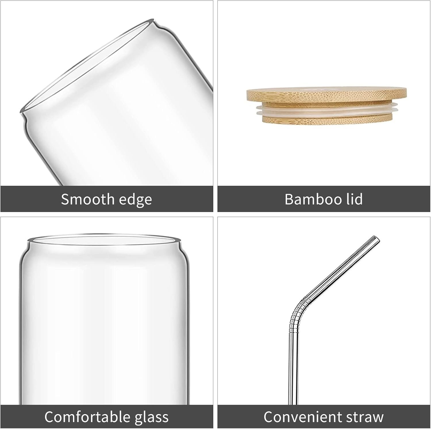Include: ☀Premium glass cup 16oz + ☀ Bamboo Lid + ☀ Straw stainless steel