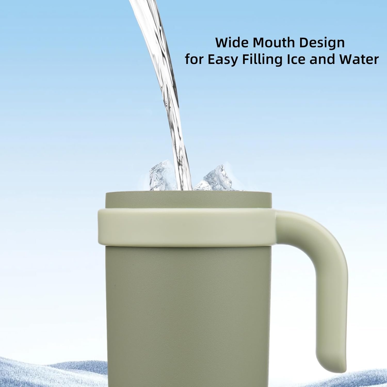 Wide Mouth Water Bottle: The wide mouth design makes this insulated tumbler easy to add drinks and ice cubes, the bottom is covered with plastic for anti-scratch and less noise, the bottle size is cupholder friendly, also easy to carry with the wide handle