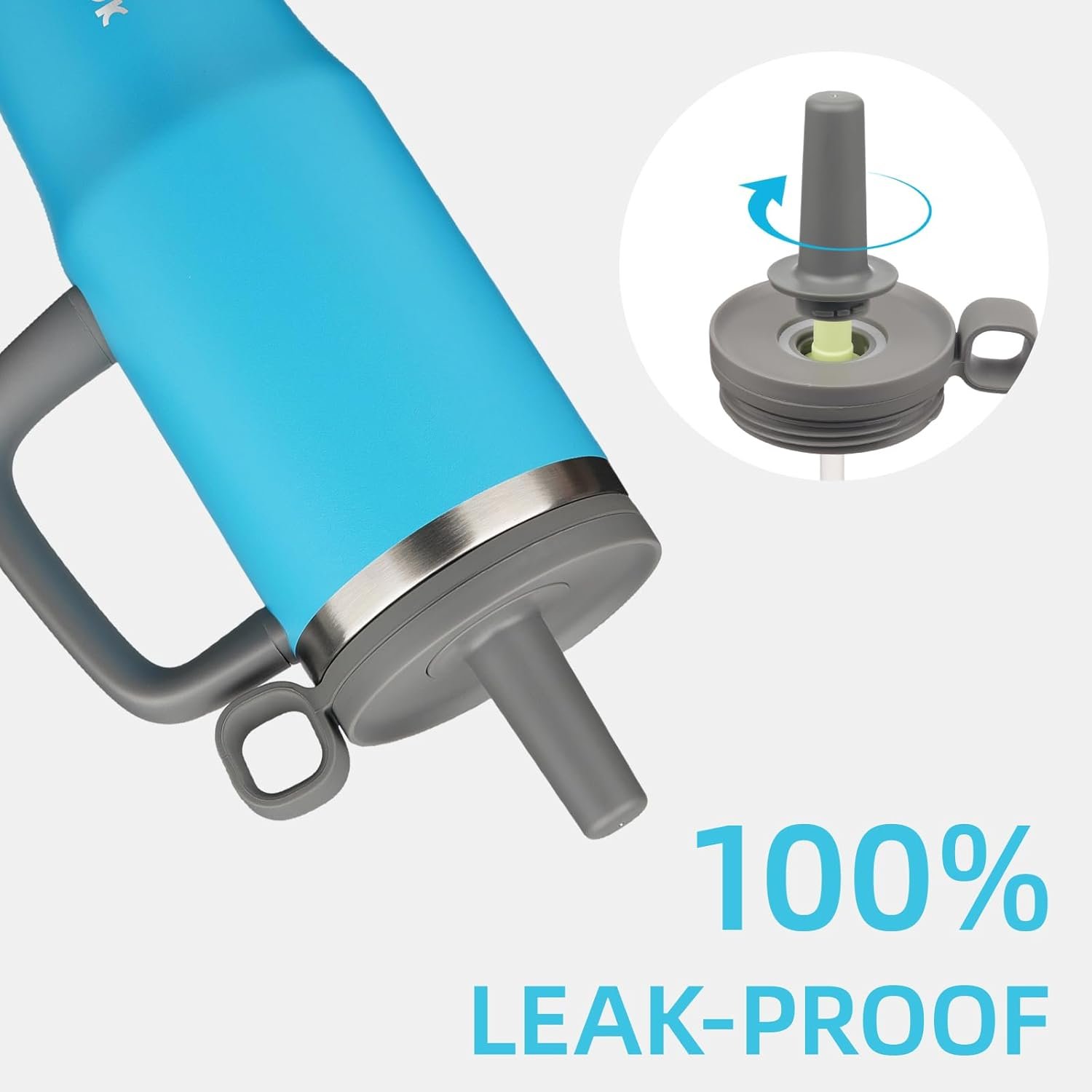 BPA-Free & Leakproof Lid: Design a D-ring at the screw-on lid, allowing for versatile carrying options, built-in straw comes with a cover cap, dust-proof cap keeping straw hygienic at any time also prevents leaks, when the cap is unscrewed, simply place it into the silicone loop on the side