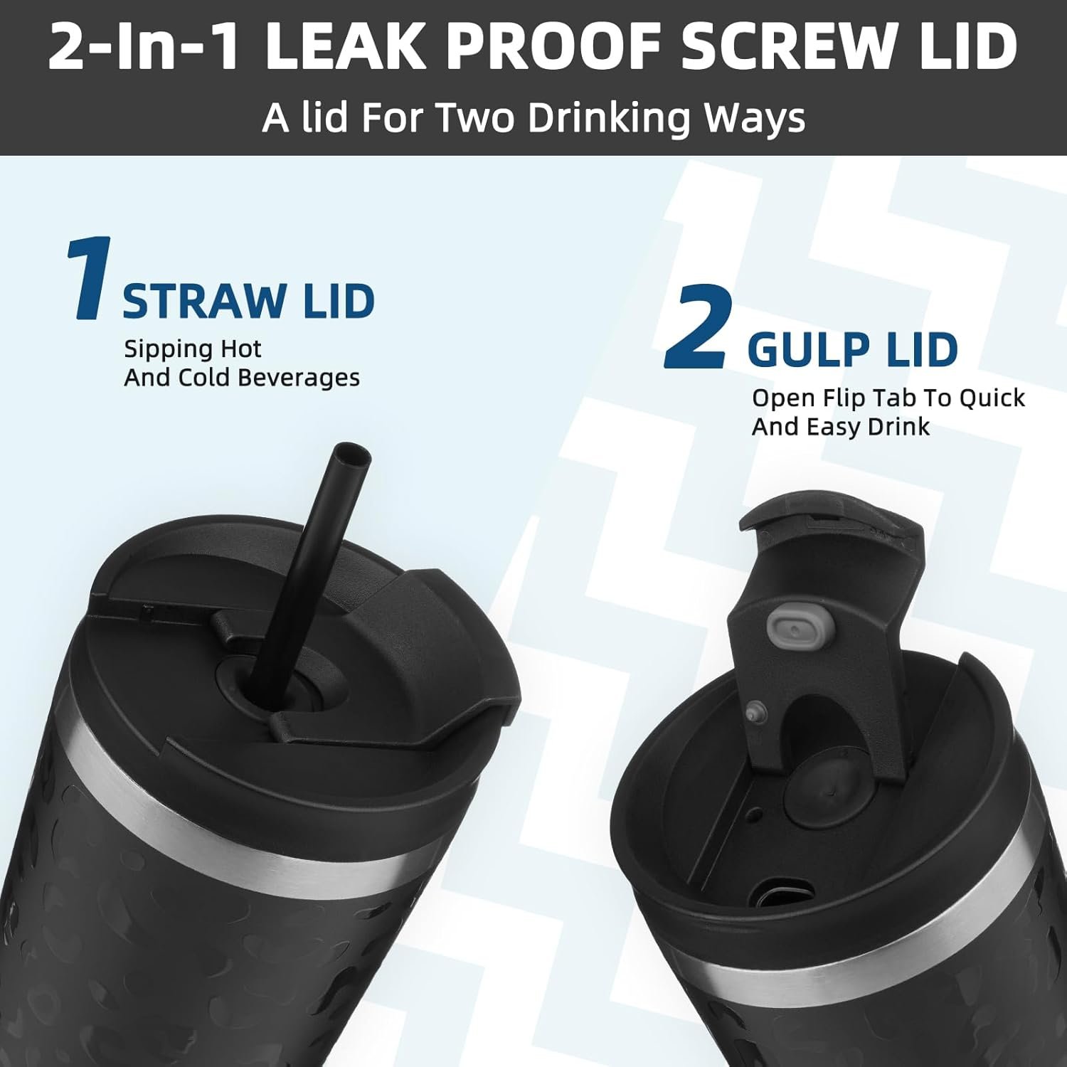 BPA-Free Threaded Lids: The 2 In 1 Screw-on Lid, Not Only Can You Open The Lid And Drink Directly From The Flip Lid, But Also Can Insert A Straw In The Middle, Choose Your Own Way For Drinking