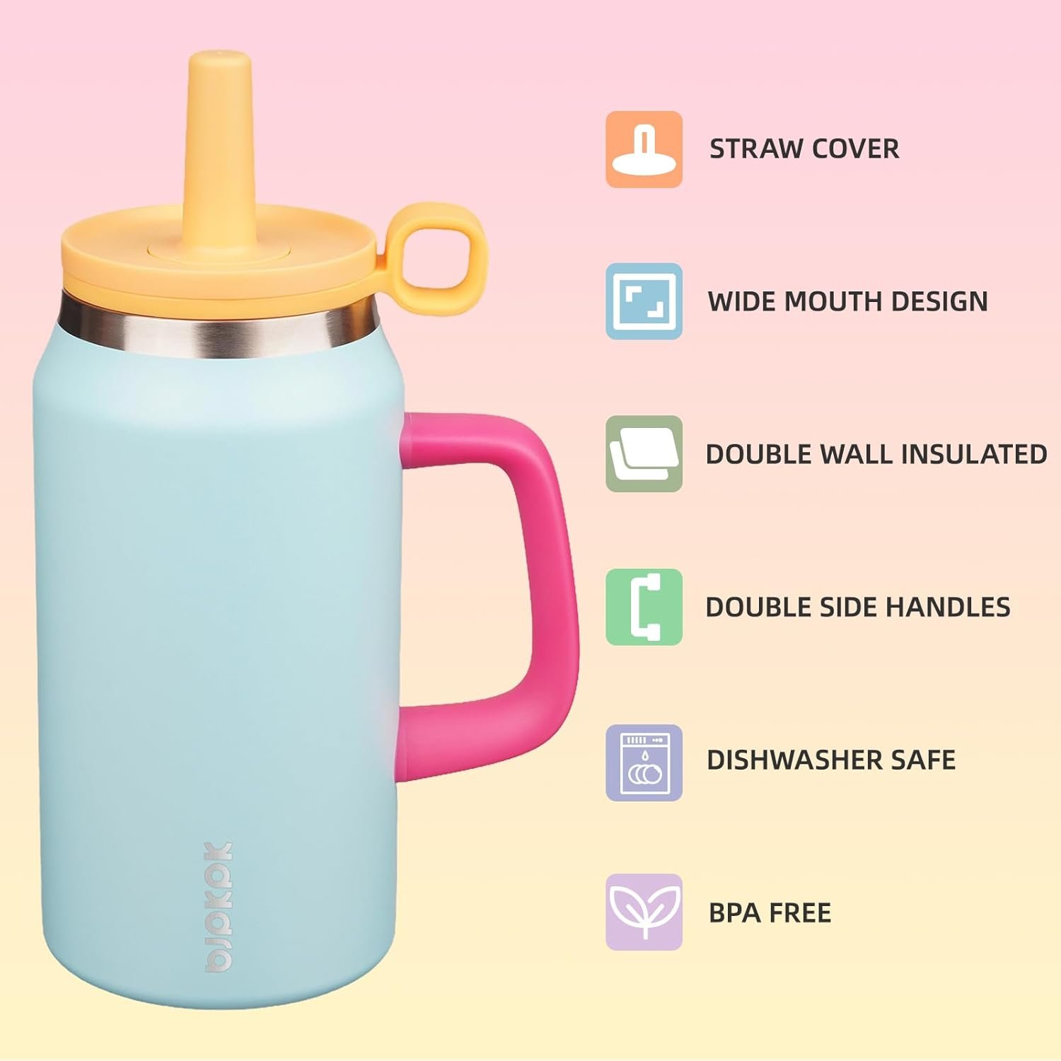 BJPKPK 50oz Insulated Tumbler with Handle Stainless Steel Travel Coffee Mug with Lid Reusable Large Water Bottle with Straw,Sky Blue