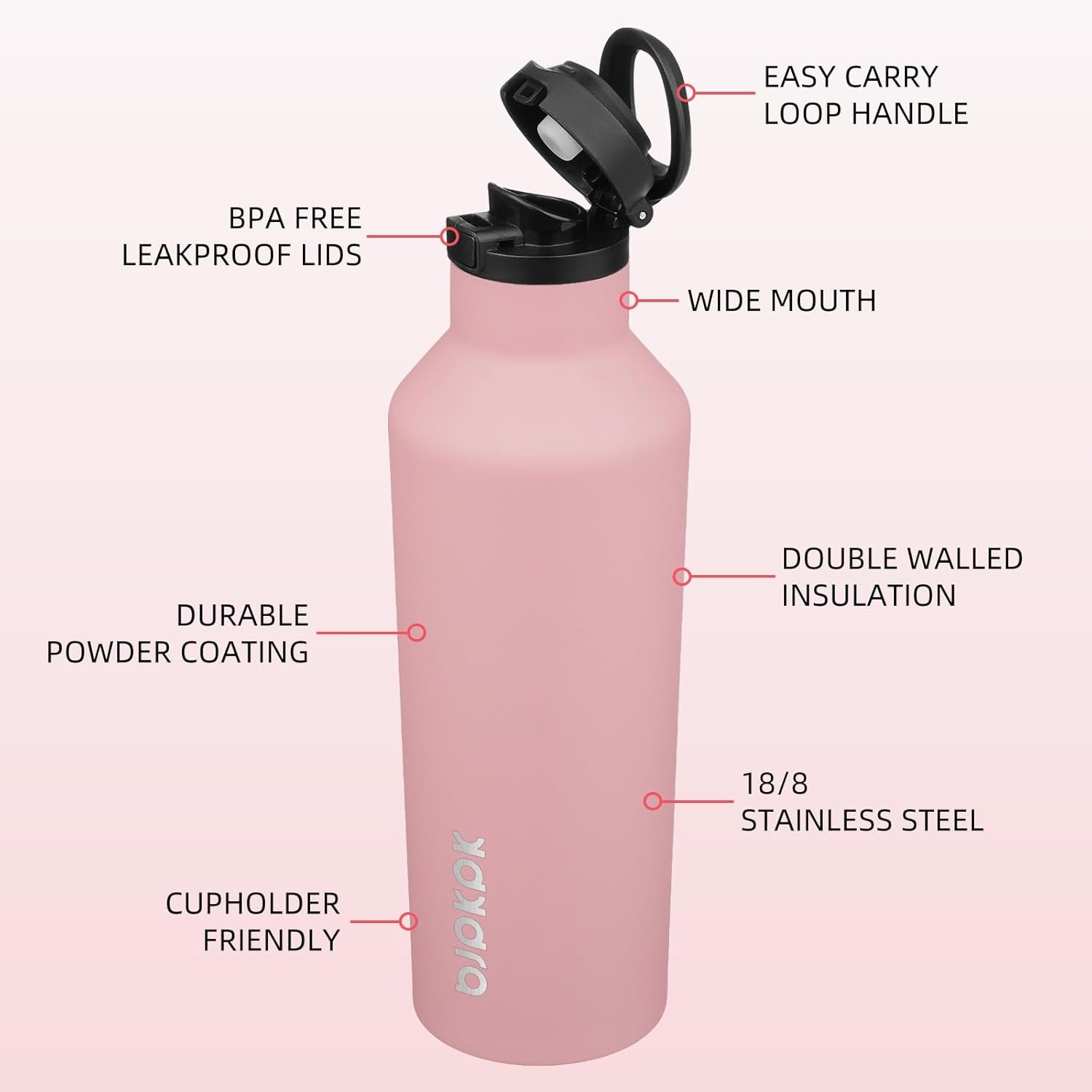 Great On the Go: The travel water bottle with loop handle is easy to carry. Fits in most cupholder and backpack side pocket. A great choice for your indoor workout and outdoor activities, ideal for cycling and gym, perfect for hiking and camping