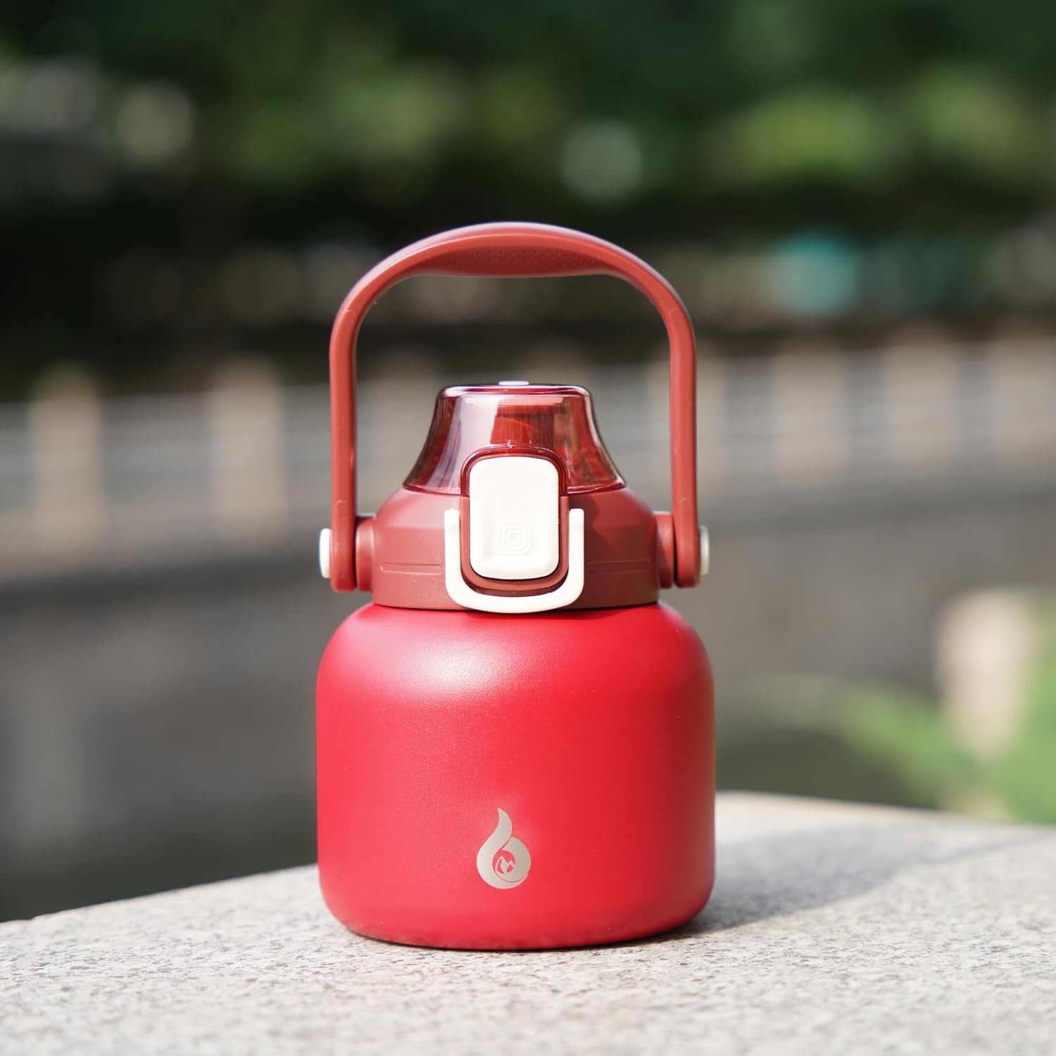 INSULATED WATER BOTTLE WITH ONE-CLICK OPENING LID: Just push the button with one hand, the straw will pop out automatically, our insulated water bottle with straw gives you an easier way to drink water. The straw is removable, you can enjoy sipping with straw or fast water flow without straw. This upgraded lid comes with a safety lock and dust-proof cap that ensures 100% leakproof and healthy daily water drinking