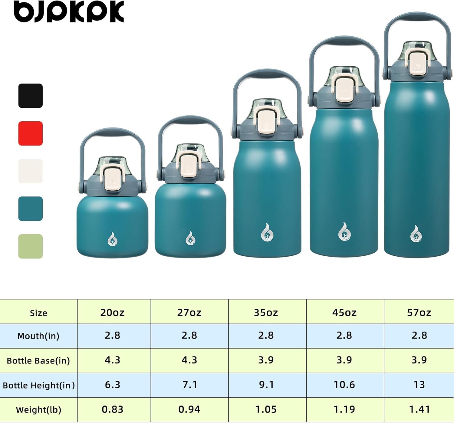 DOUBLE-WALLED VACUUM INSULATION: BJPKPK sports water bottle use double-walled and vacuum sealed technology to keep your water cold for up to 24 hours, or hot for up to 8 hours. Whether you’re at the gym, on a hike, or simply running errands, this sports water bottle is your ideal companion