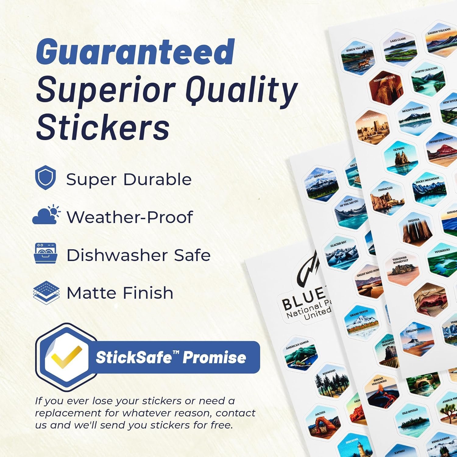 ADVENTURE-PROOF STICKERS: The BlueTrail National Park Water Bottle with Stickers comes alive with your adventures; add a durable, UV-ink printed color sticker each time you conquer a new national park (all 63 parks of the USA water bottle stickers are included). These weatherproof emblems are designed to last as long as your memories.