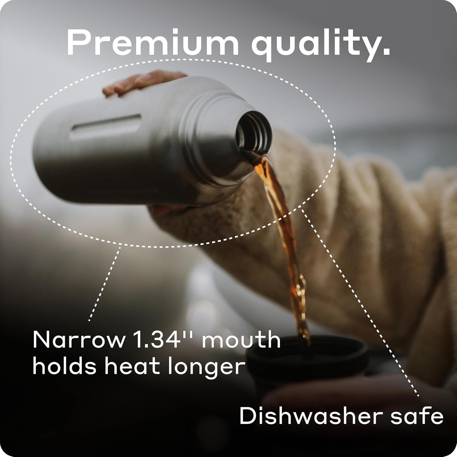 The more content placed in the thermos, the longer the original temperature will last. Pro-tip: for best heat retention, preheat flask with boiling water before pouring hot drink. For cold, pre-chill with iced water before pouring cold drink.