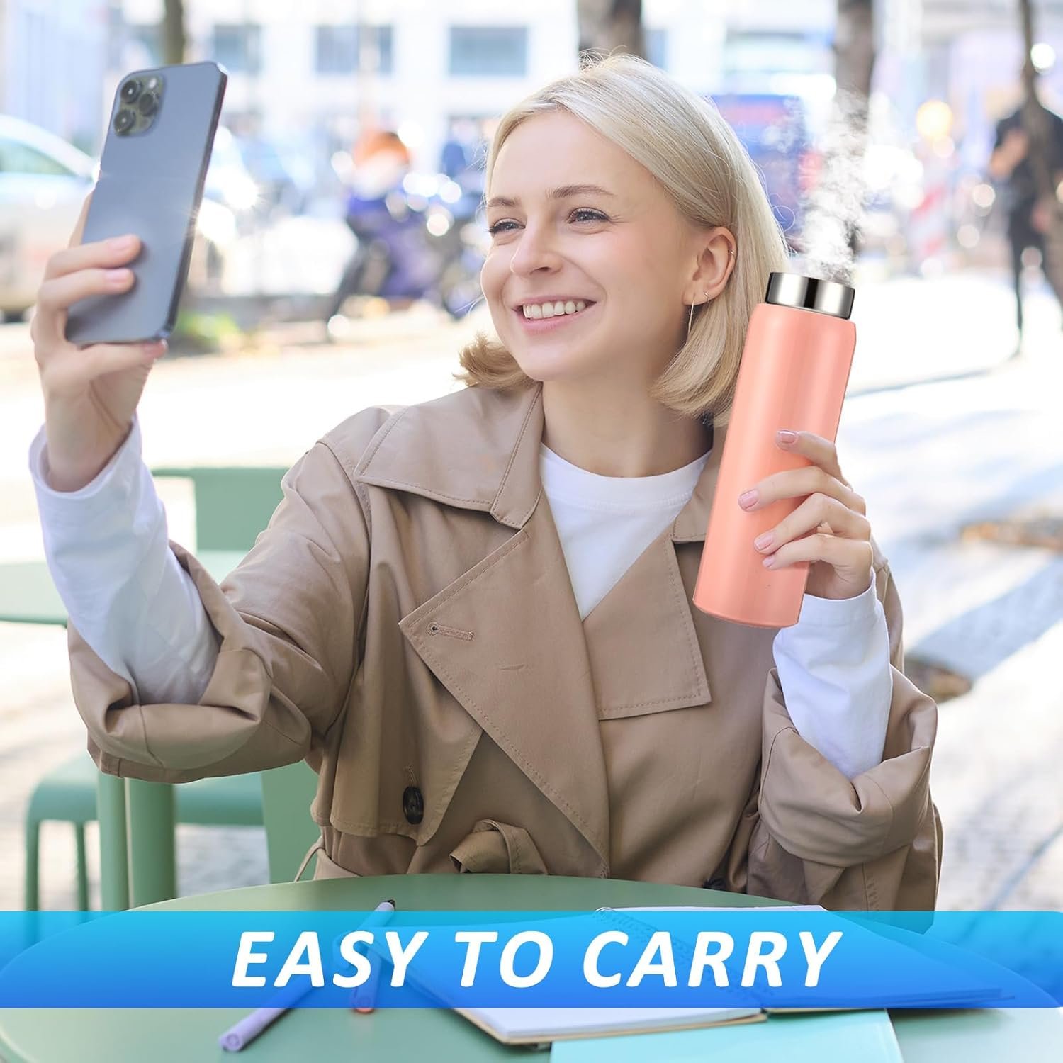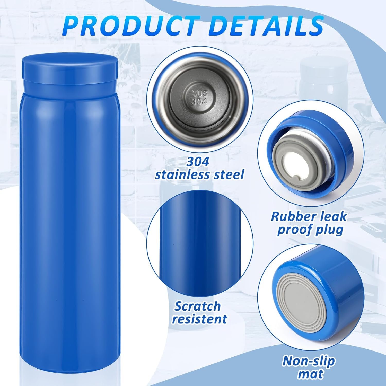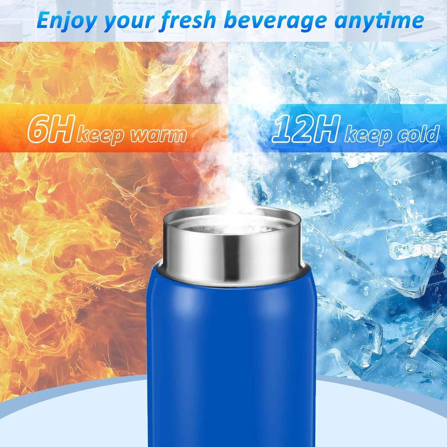Double Wall Vacuum Insulation: the water bottle is made of 304 stainless steel, with double wall vacuum design, durable and lightweight, the portable coffee cup is suitable for any hot or iced drinks, such as coffee, cola, milk, tea, juice, it can keep your hot drinks hot for up to 8 hours, cold drinks cold for up to 6 hours, allowing you to enjoy your favorite drink at any time of the day