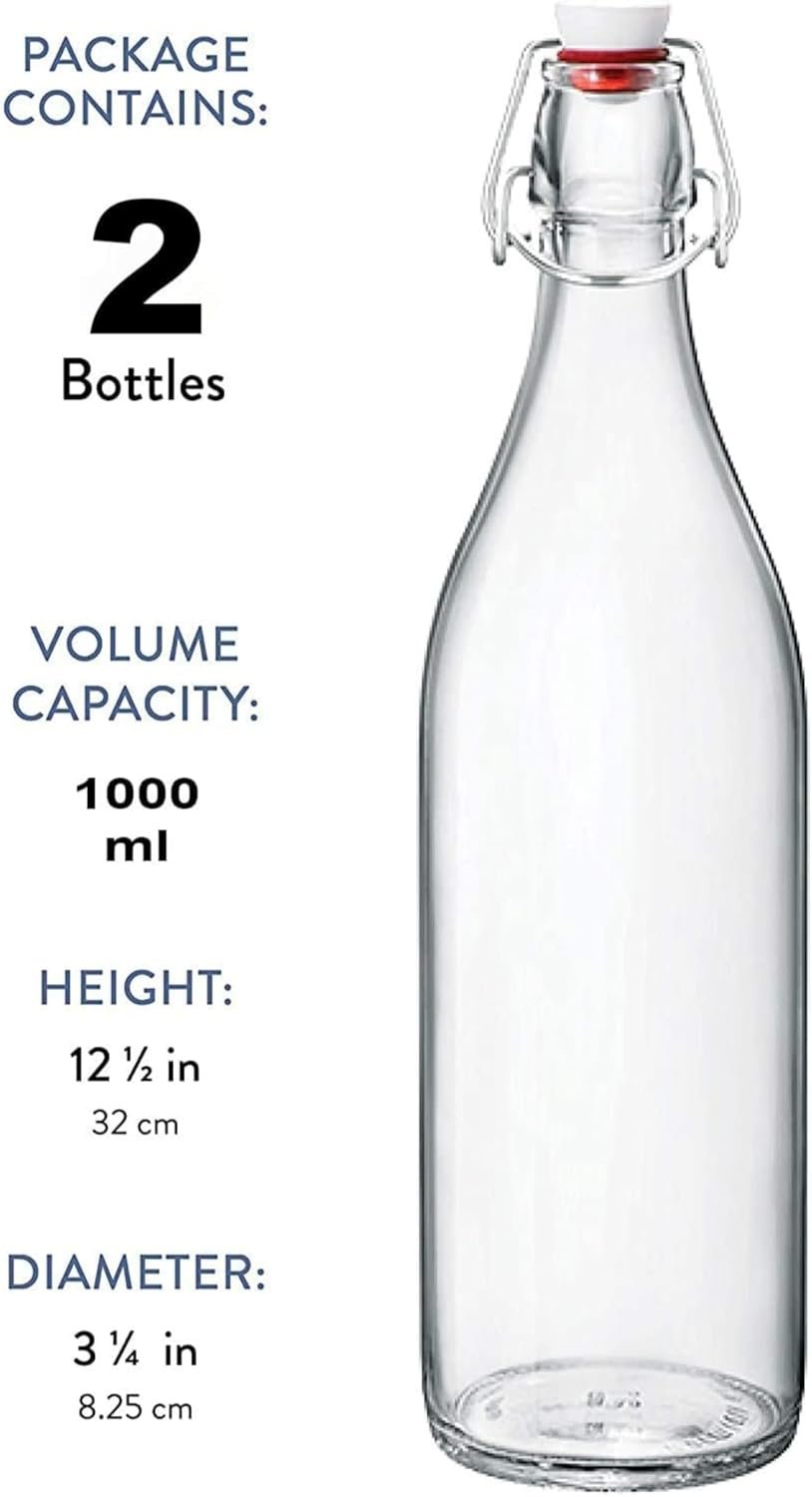 Bormioli Rocco Giara Beverage Bottle, 33.75 oz (Set of 2) – Leakproof Glass Container for Homemade Juices & Dressings – Stylish Drinkware Storage for Kitchen/Restaurant – Made in Italy (Clear)