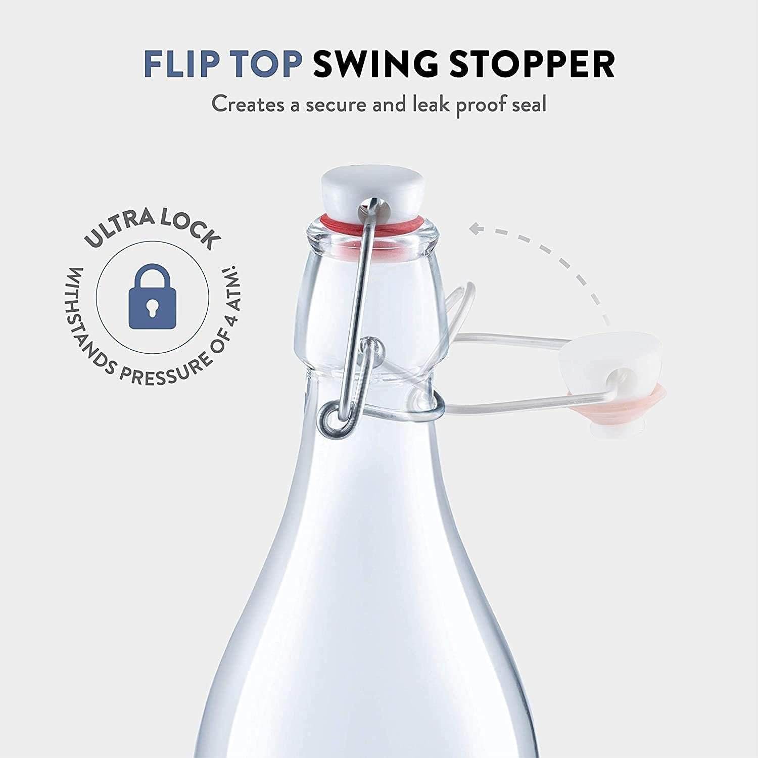 BPA-Free Glass: Crafted from durable, BPA-free glass, these reusable glass bottles with swing caps ensure your beverages stay pure and uncontaminated, free from plastic or chemical leaching.