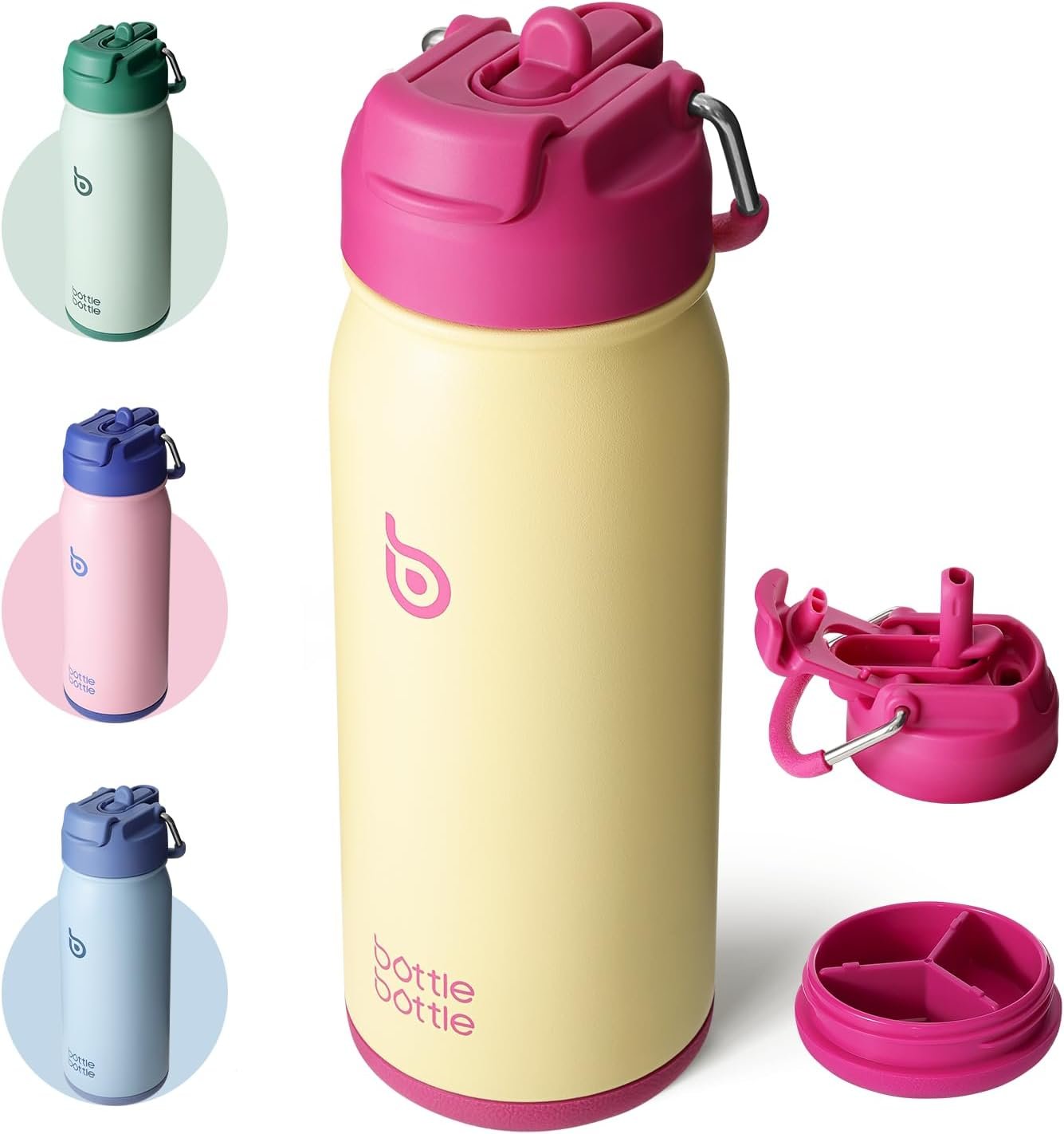 BOTTLE BOTTLE 16 oz sports water bottle stainless steel insulated kids water bottle with straw and pills holder for gifts and school(milkshake yellow)