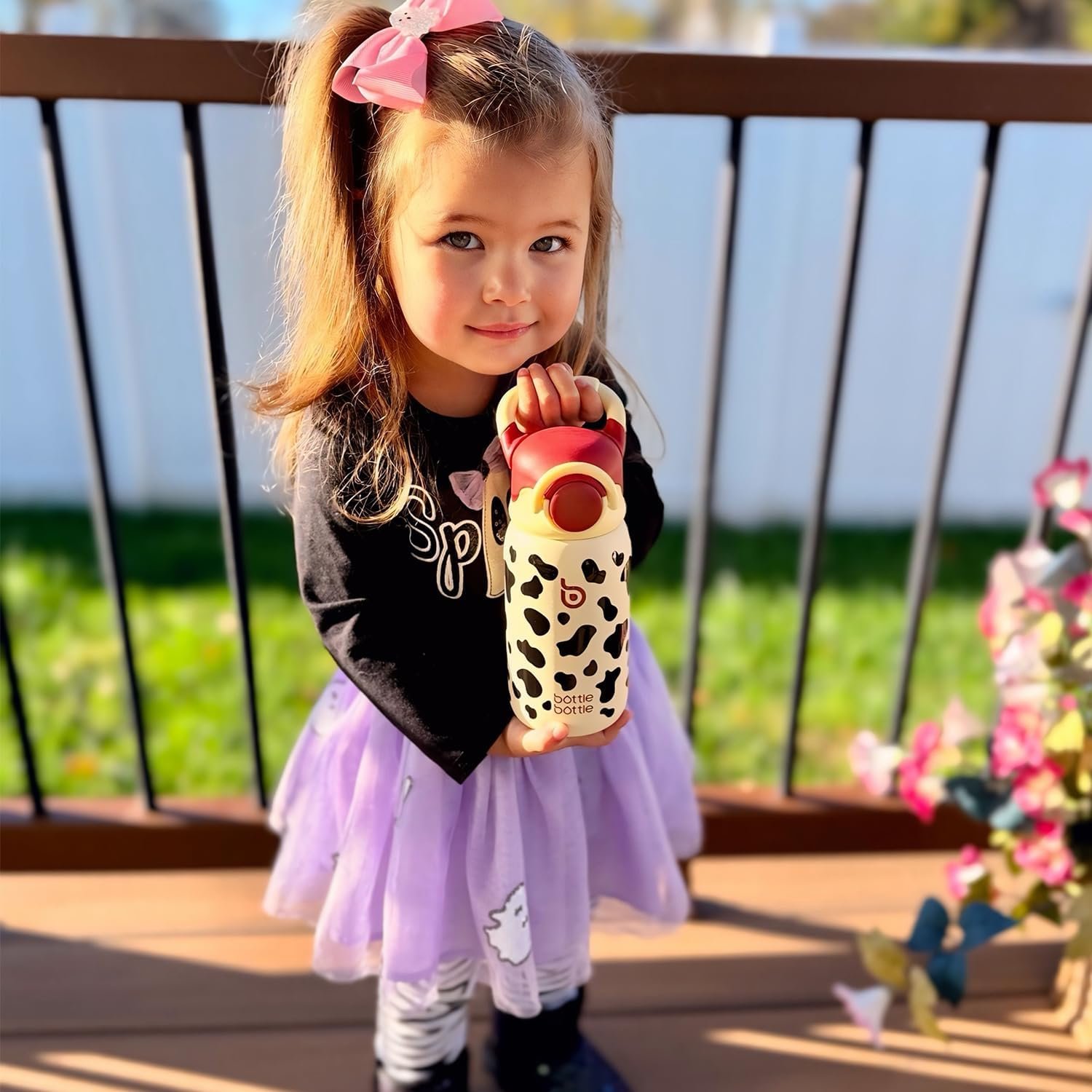 BOTTLE BOTTLE Kids Insulated Water Bottle with Straw Lid and Handle 16 oz Stainless Steel Vacuum Tumbler Water Bottles for School Outdoor Travel Gifts for Boys and Girls Cow