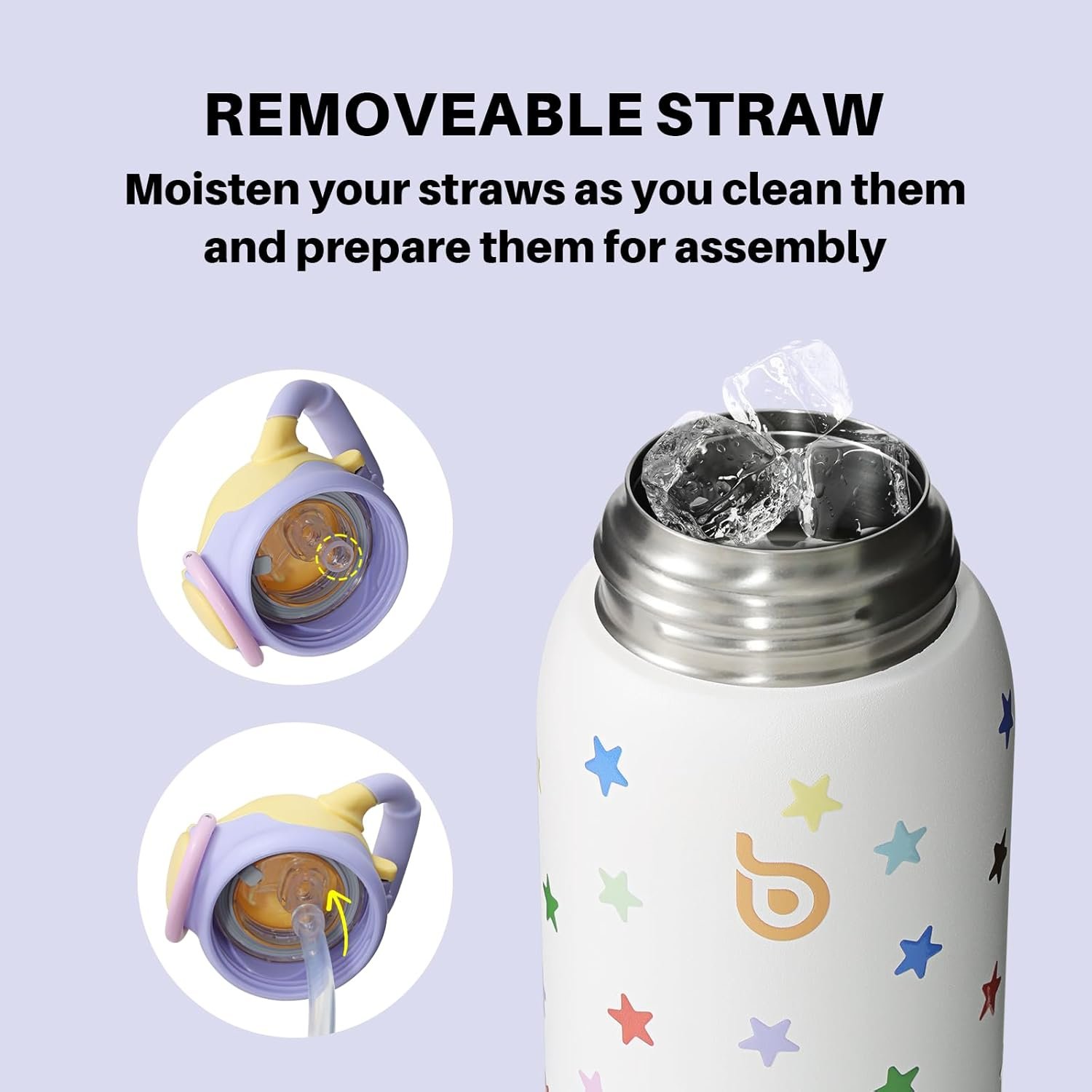 Thoughtful design: The straw lid is designed to be easy to drink from and leak-proof, even when placed upside down in a backpack. The straw is removable inside and out, so when you clean the straw, just moisten it with water and it can be easily assembled