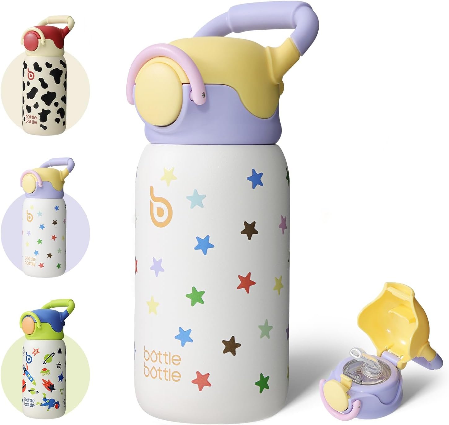 BOTTLE BOTTLE Kids Insulated Water Bottle with Straw Lid and Handle 16 oz Stainless Steel Vacuum Tumbler Water Bottles for School Outdoor Travel Gifts for Boys and Girls Stellar Pop