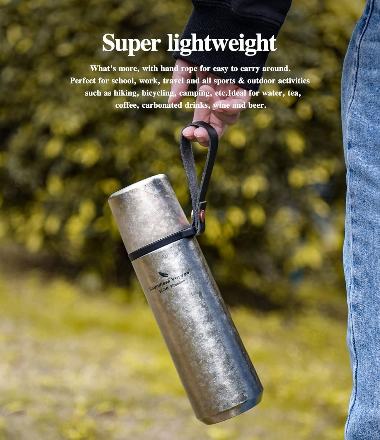 CONVENIENT TO CARRY – Unlike other vacuum bottles, titanium vacuum bottles are very light and it has a hand rope for easy to carry around. Perfect for school, work, travel and all sports & outdoor activities such as hiking, bicycling, camping, etc. Ideal for water, tea, coffee, carbonated drinks, wine and beer.