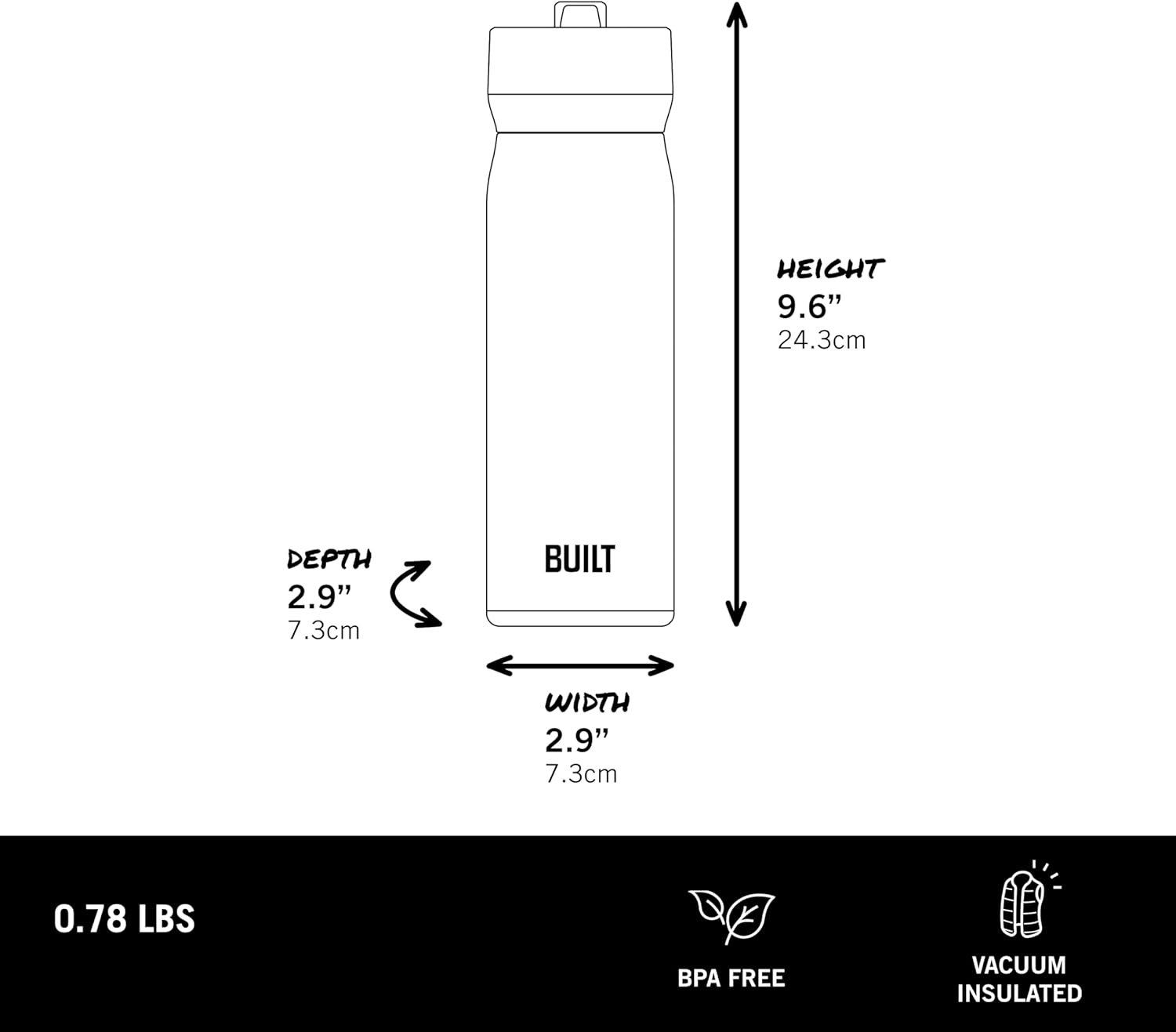 Built 20 fl oz Double-Walled Stainless Steel Wide Mouth Cascade Bottle, Straw Lid Spill-resistant Travel Cup with Rubber Grip Keep Drinks Cold Hot for Home Travel